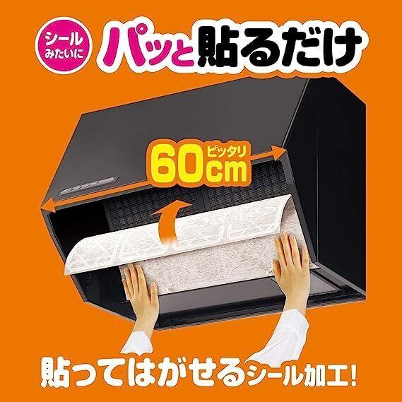 シールみたいに取付簡単な60cm幅用フィルター。パッと貼るだけで油汚れを防ぎます。粘着タイプのフィルターなので、取付けがシールのように簡単・きれいに行えます