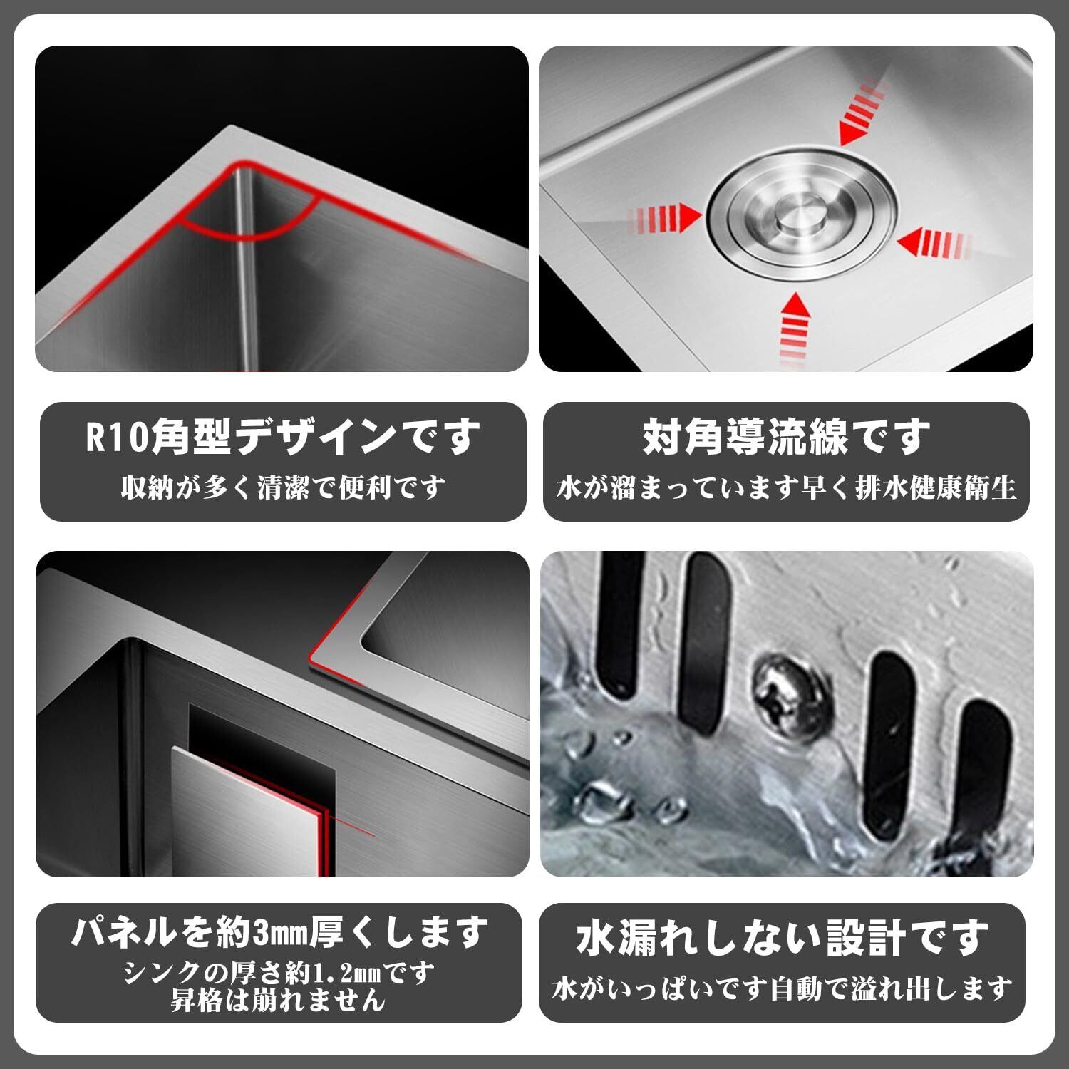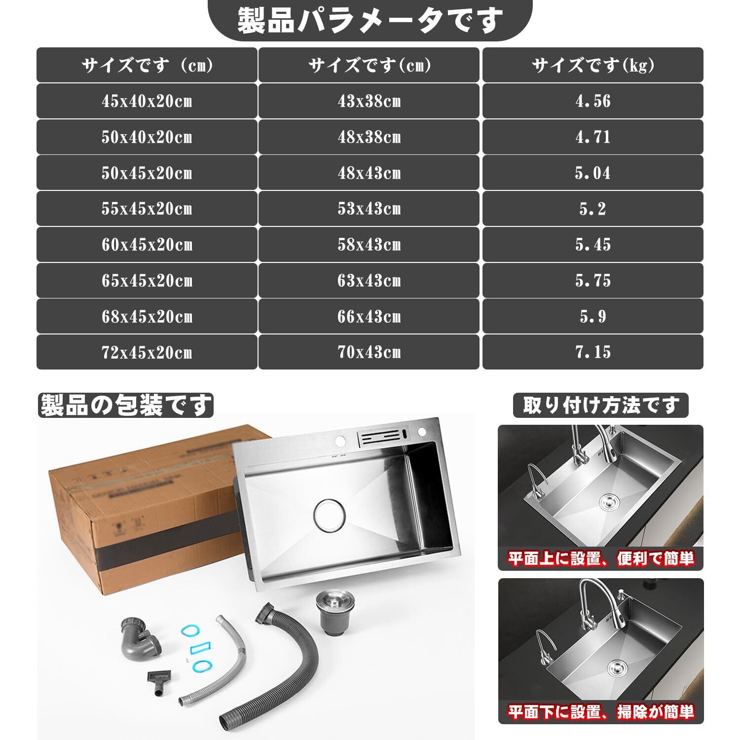 LSPYYDS キッチン シンク シングルシンク ステンレス製 大容量シンク 流し台 台所用流し台 シンクセット 最新ナノ技術搭載 静音加工 結露対策 防油 防汚 置き場付き 錆びず 簡単取付 省スペース シンクアクセサリー付き 複数のサイズが利用可能 台所 家庭用 60x45x20CM | KSショップ