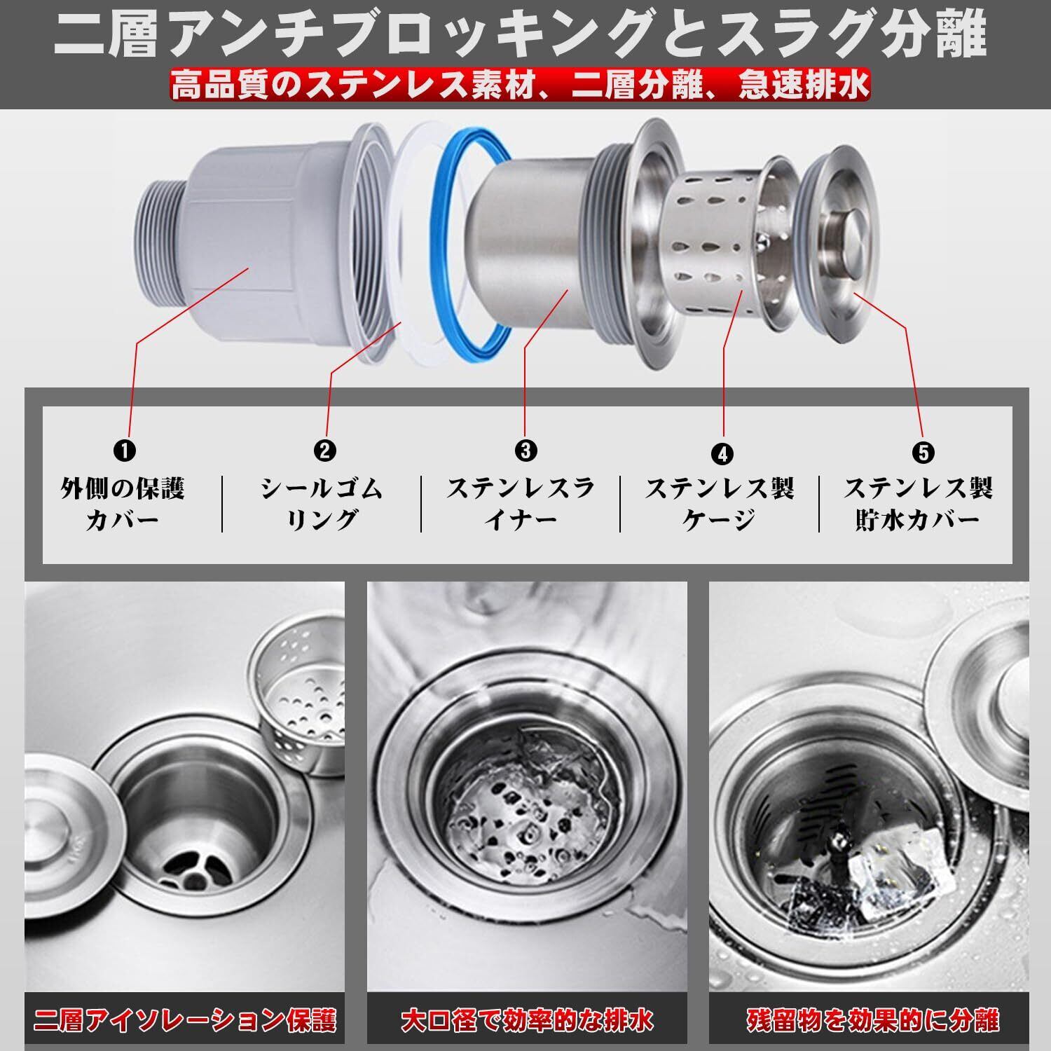 【自ら清浄機能と防臭パイプ付】水に濡れないで、抗菌、清潔しやすくていつも新しいです。V型の防臭下水システムは、爬虫類を入れない、大口径は排水が速く、良好な循環を形成しています。普通流し台より、の流し台はS型の防臭排水管のデザインは、下水フィルター、詰まりません、排水は速くて水が漏れることも不可能です。