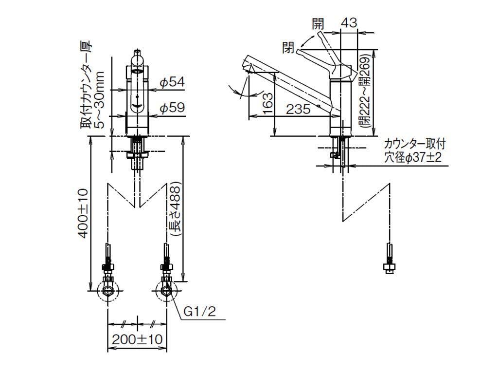 【本体仕様】取付カウンター厚み:許容範囲6~30mm/取付穴径:35~39mm/吐水パイプ長さ:235mm/浄水器の後付けが可能です。