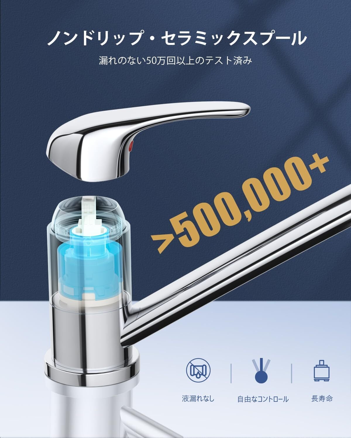 DAYONEキッチン蛇口 キッチン用 ワンホールシングルレバー混合水栓 キャラバンとキッチンシンクの水栓 鉛フリー 節水 真鍮製 標準G1/2インターフェース 日本語の取り付け説明書付き | KSショップ
