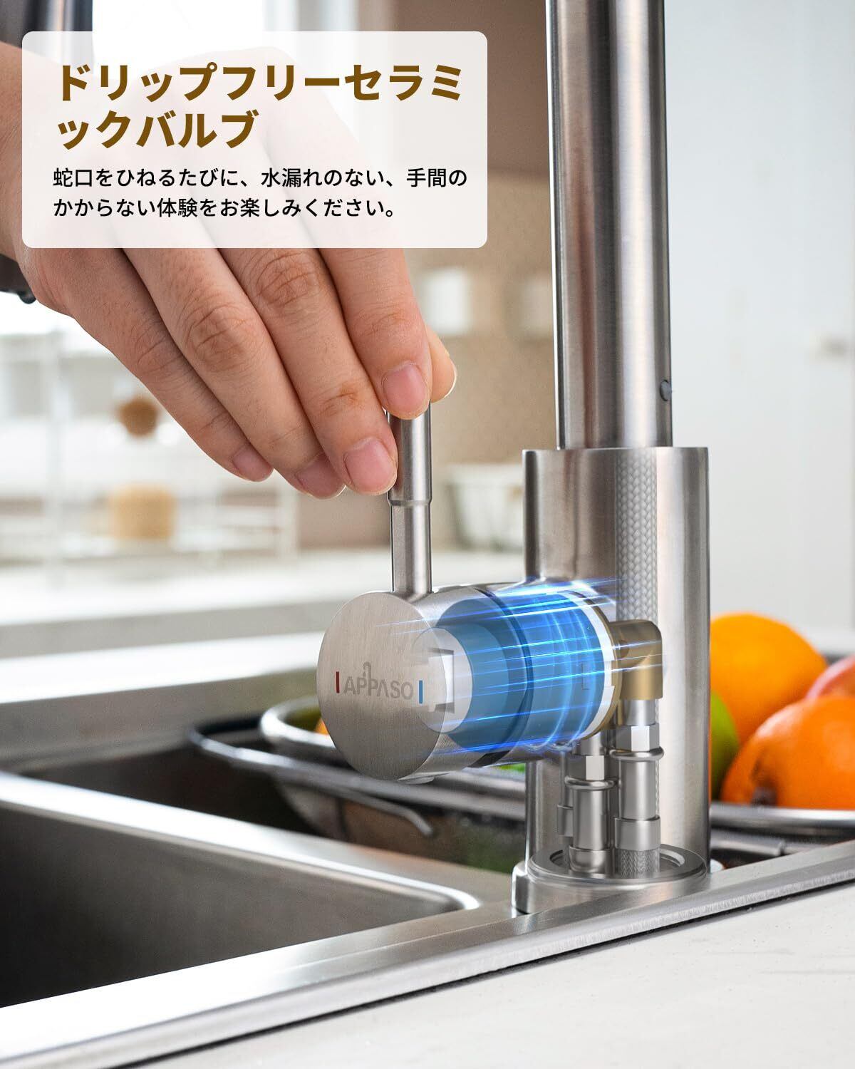 【BLYLUNDハイアーチ安全で健康的なキッチン蛇口】SUS304ステンレスとPEX内部配管は、無鉛、無毒、無臭で、長時間使用しても酸化したり錆びたりせず、有害物質の放出を抑えるので、ご家庭の水を安心してお使いいただけます。