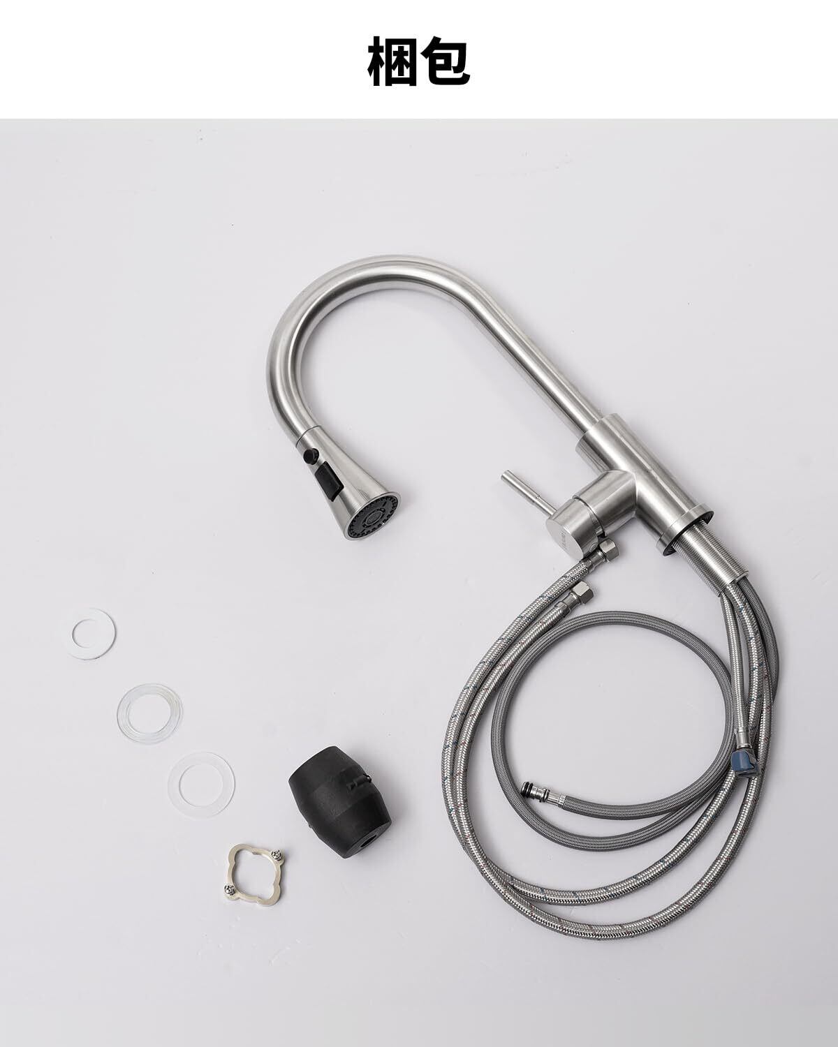 【簡単取り付けキッチン水栓】キッチン水栓の簡単な取り付けは、DIYで約20分、水栓を取り付けるための4つの簡単なステップだけで、配管工や専門的な工具は必要ありません。パッケージには、日本国内用G1/2インレットパイプ、長さ60cmの吸水管2本、400gのグラビティボール、取り付けアクセサリー、取扱説明書が含まれています。