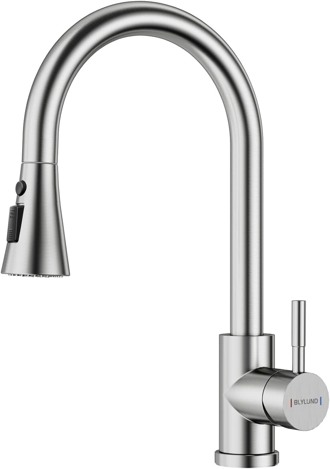 BLYLUND キッチン水栓3つの水流モード混合水栓モダンシングルハンドルシングルホールキッチン蛇口引き出し式ホース ハイアーチキッチンバーバスルーム屋外用最適360°回転節水型バブリング水流水栓SUS304ステンレス鋼, ブラッシュド・ニッケル | KSショップ
