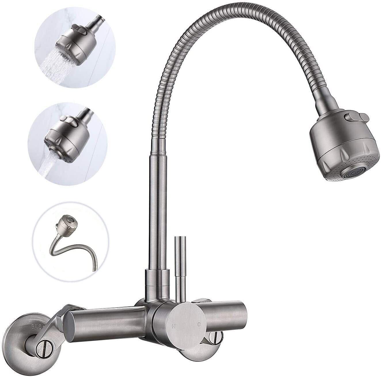 【2025年アップグレード版】混合栓 Hefo 水栓 キッチン水栓 混合水栓 壁付き水栓 蛇口 洗面水栓 シングルレバー混合水栓 シャワー付き蛇口 節水 360度自由回転 冷 熱切り替え 取り付け幅70-230mm対応 | KSショップ