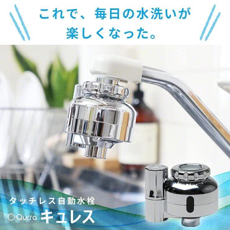 Qurra(キュレス) タッチレス 自動水栓 後付け キッチン 乾電池 節水 工事不要 オートストップ 3分間 赤外線センサー 衛生的 Qurra クルラ キュレス (シルバー)