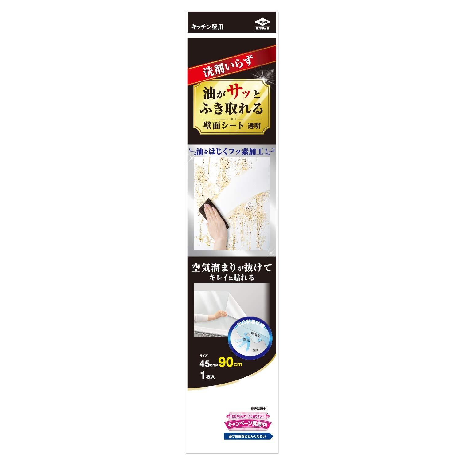 東洋アルミ 油がサッとふき取れる壁面シート 約縦45cm×横90cm 透明 2861
