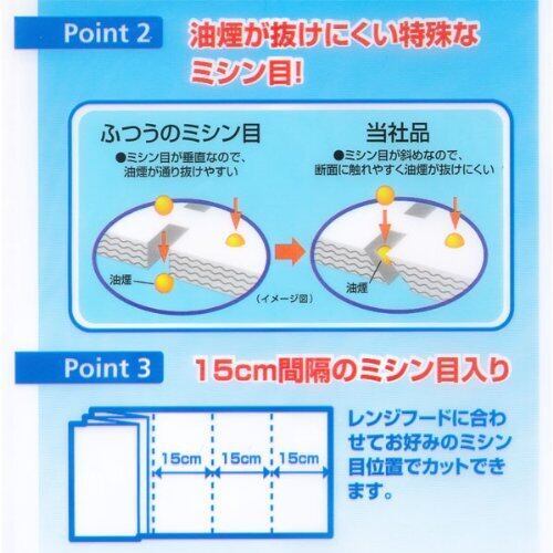 特徴:厚手フィルター(約5mm)により吸油力が約2倍! (従来品は約2.4mm)面倒な取替え回数が減ります!