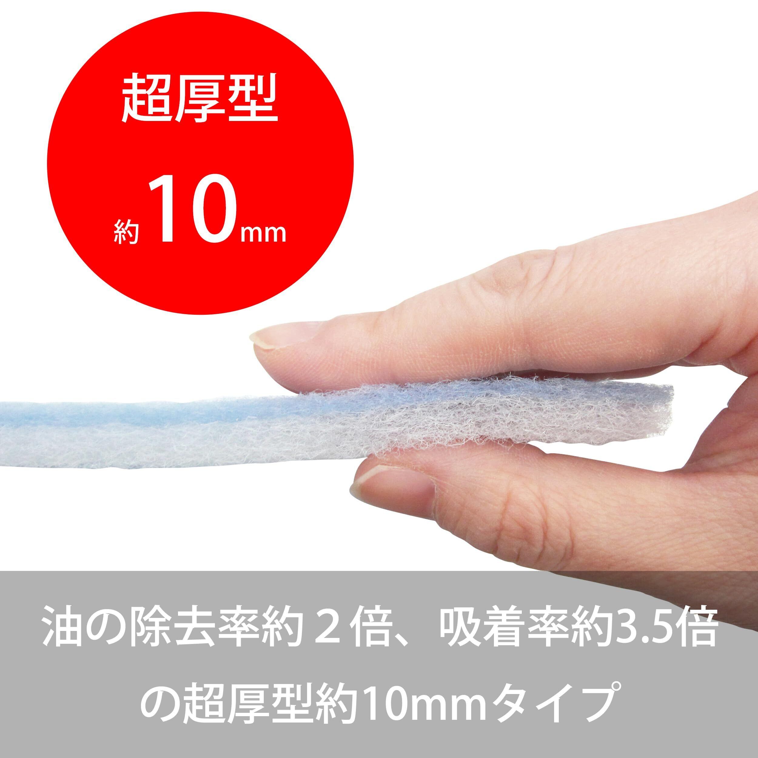 油の除去率約2倍、吸着量約3.5倍の超厚型約10mmタイプ(当社比、対レギュラータイプ)