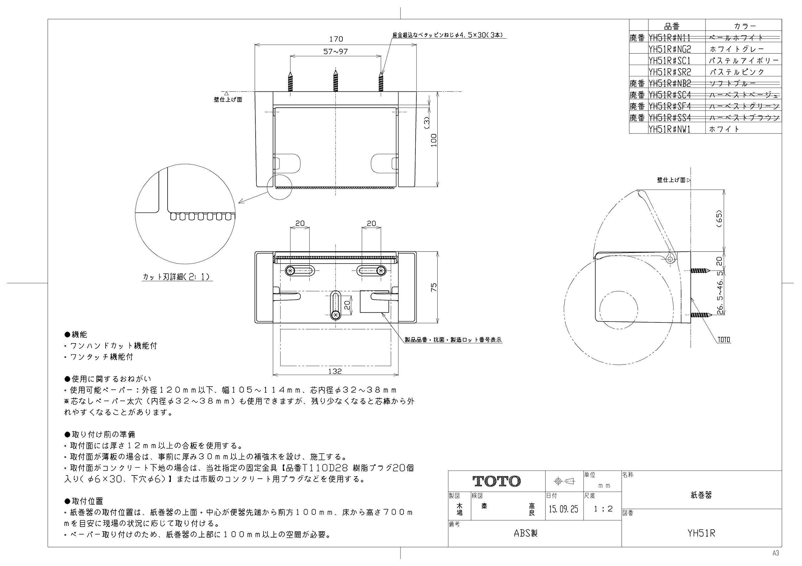TOTO 紙巻器 ホワイト YH51R#NW1