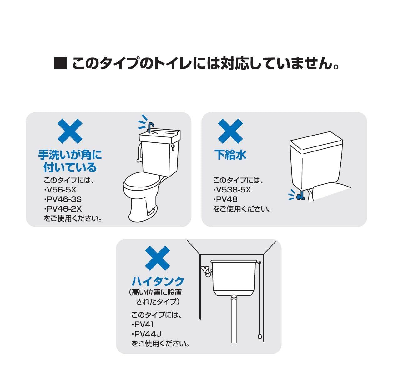 手洗いが角についているタイプ・下給水・ハイタンクのトイレには対応していません。