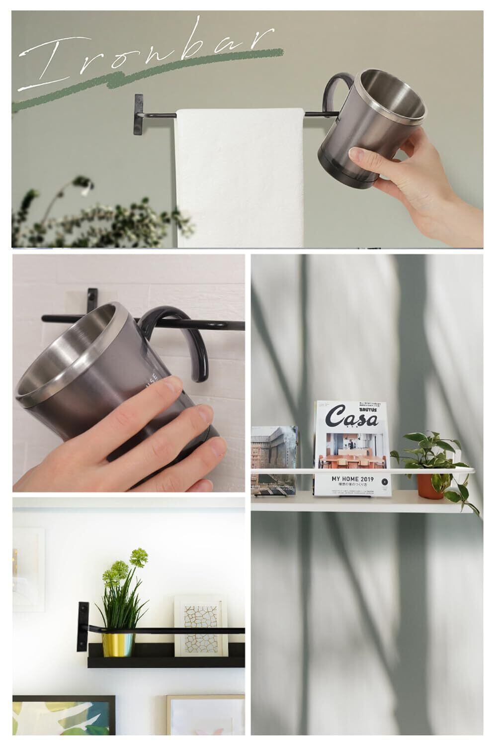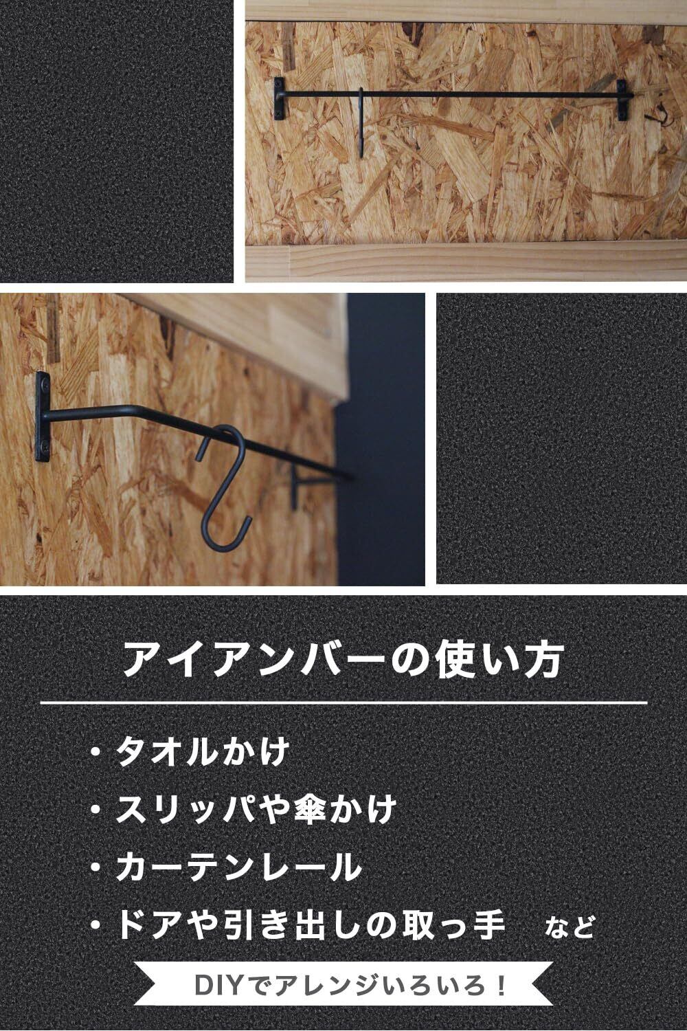 KBER 【一級建築士デザインのアイアンバー】バスタオル タオル掛け タオルハンガー おしゃれ ネジ式 艶消し塗装【ドア扉の取っ手 物干し スリッパ 本棚 天井取付 使い方いろいろ】 (ブラック, 6mm 18.6cm) | KSショップ