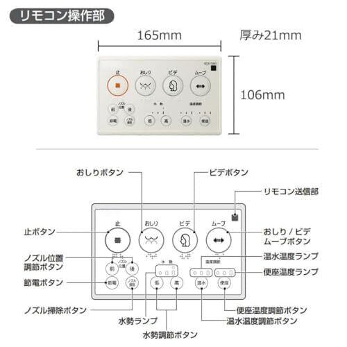 着座検知:赤外線検知式 ・温水洗浄装置:おしり洗浄(ml/分)約500〜670 ・ビデ洗浄(ml/分):約500〜650 ・水勢調節:おしり、ビデ各4段階調節