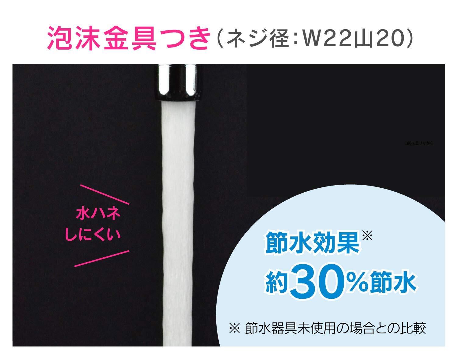 ・泡沫金具が付いているので、節水器具未使用の場合と比べて約30%の節水効果(同メーカー比)があり、毎日の生活で節水を意識せずに節約できる