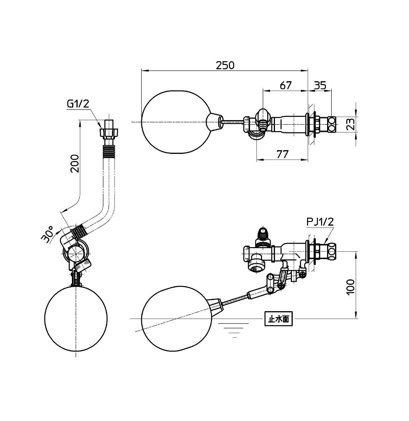 SANEI(旧社名:三栄水栓製作所)トイレ部品 手洗ロータンクボールタップ 手洗いの位置が真ん中用 連結ホース付き V46-X-13
