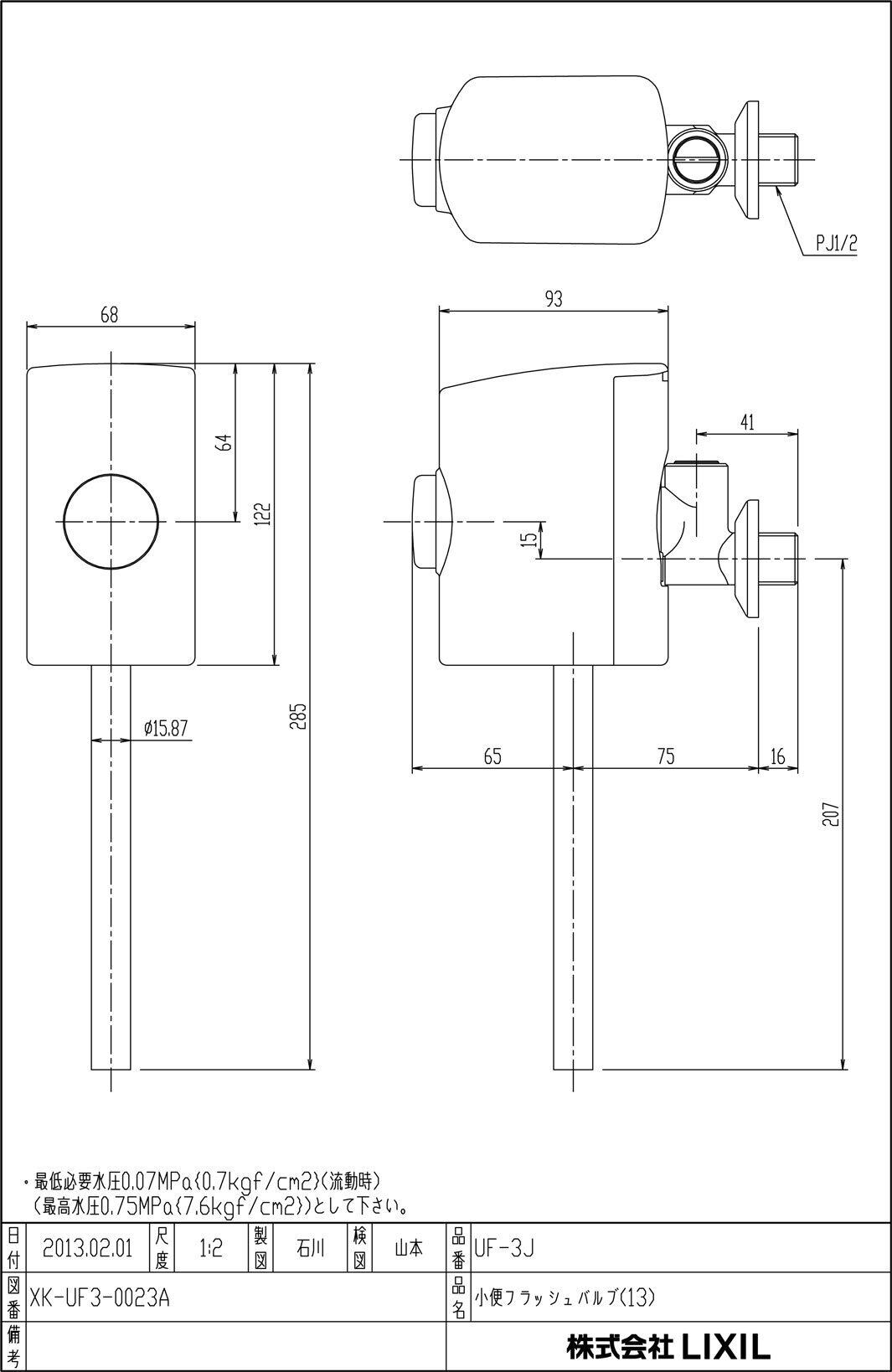 LIXIL(リクシル) INAX 小便器用金具 スーパー節水フラッシュバルブ ストール用小便フラッシュバルブ UF-3J