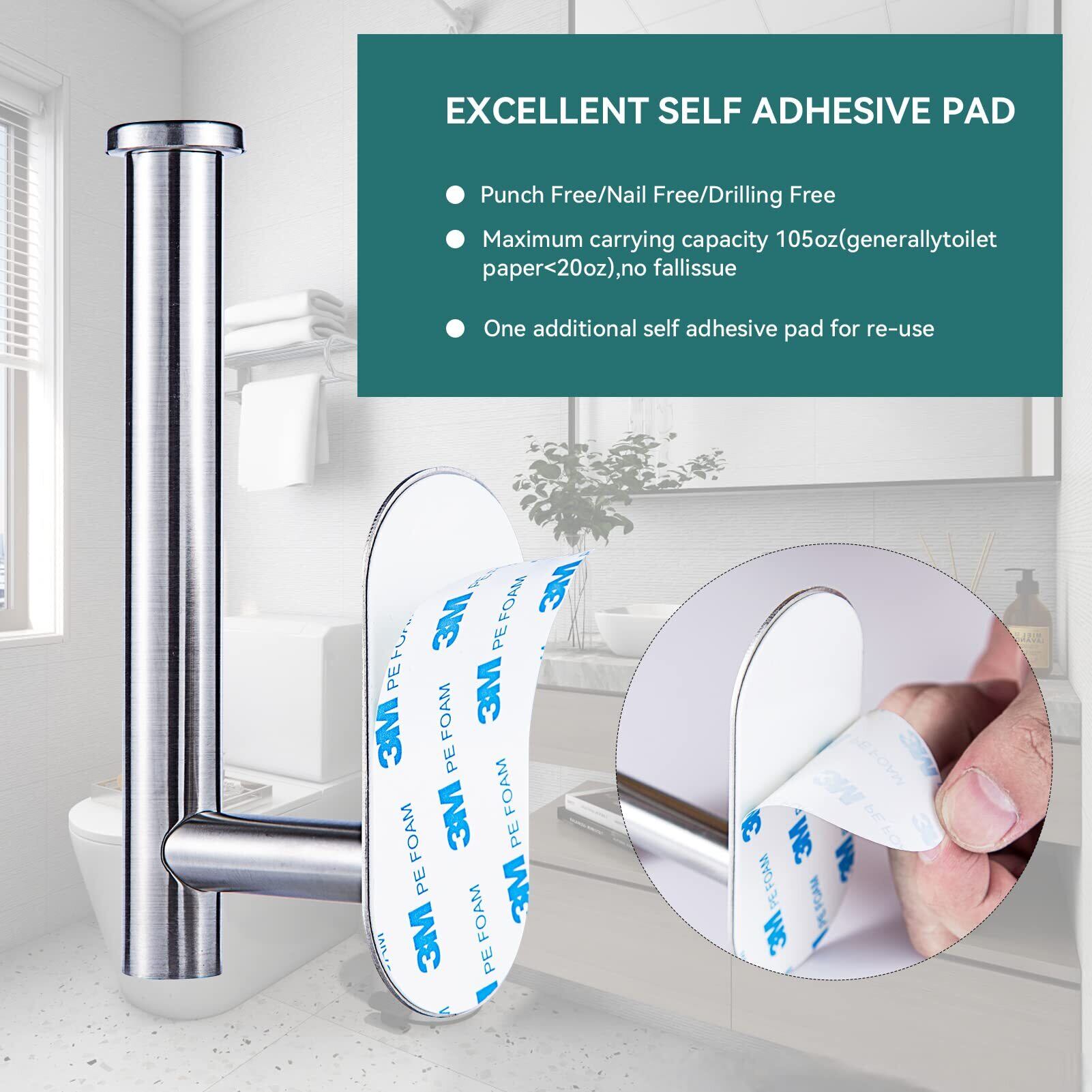 YUET トイレットペーパーホルダー 壁取り付け、3M 粘着式トイレットロールホルダー SUS 304 ステンレススチール トイレットペーパーホルダー バスルーム用 ドリル不要 (せんじょうぎん) | KSショップ