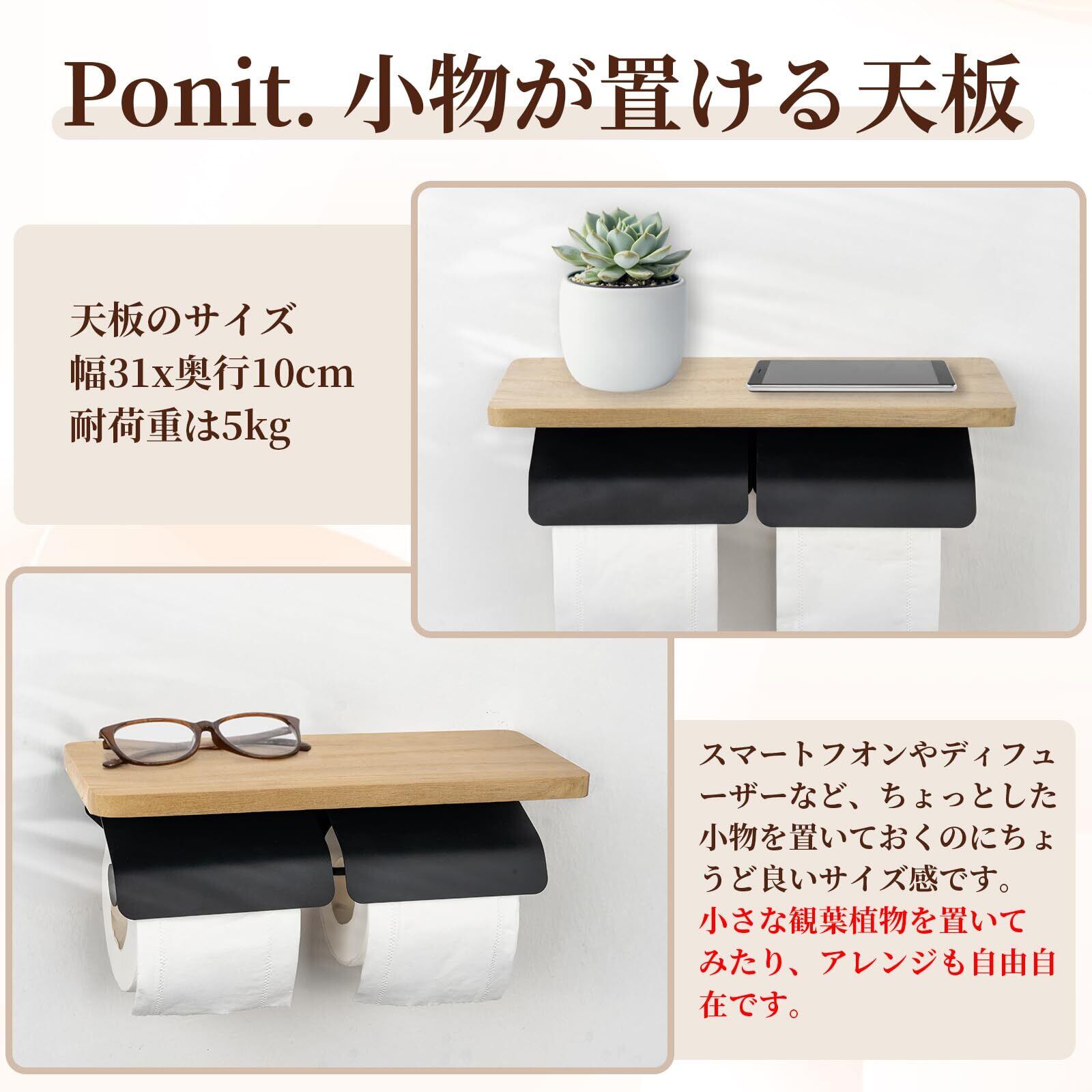 トイレットペーパーホルダー 木製 棚付き スマホ置き インテリア 賃貸 DIY おしゃれ 2連 簡単設置 補充楽 飾り棚 ペーパーホルダー 収納対応紙巻器(ナチュラル×ブラック ダブル) | KSショップ