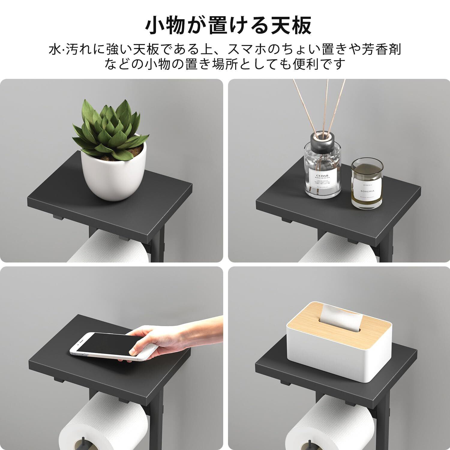 【小物などが置ける天板付き】小物などが置ける天板付きの置き型 トイレット ペーパーホルダーですので、携帯電話、ウェットティッシュ、アロマテラピー、鍵などの小物を収納でき、トイレなどの空間をすっきりさせます。