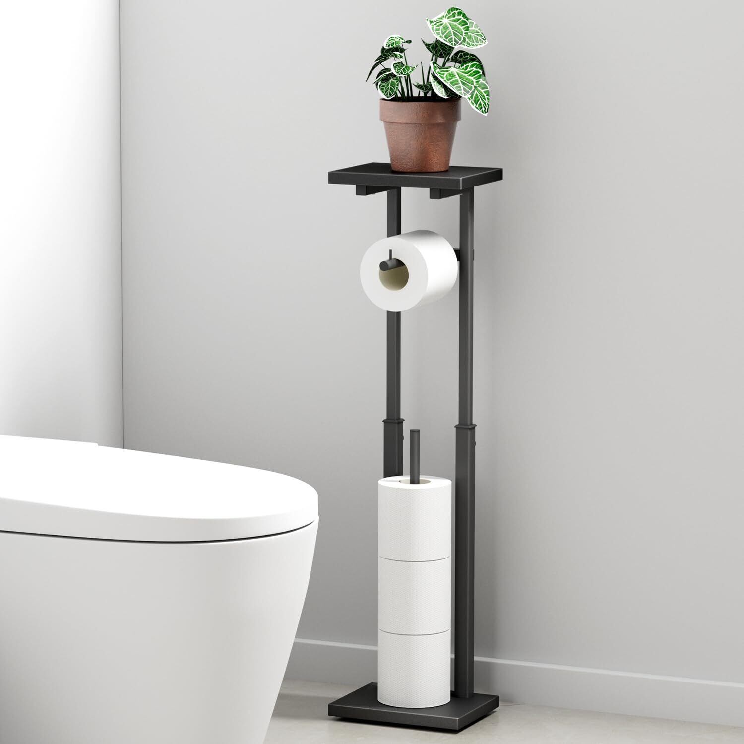 PRTONE トイレットペーパーホルダー 自立式 高さ約60.5/68.5/76.5cm三段階調整でき ペーパーホルダー 紙巻き器 おしゃれ 積み重ねタイプ トイレットペーパースタンド 置き型 木製棚付き スリム トイレ 収納 ラック ブラック | KSショップ