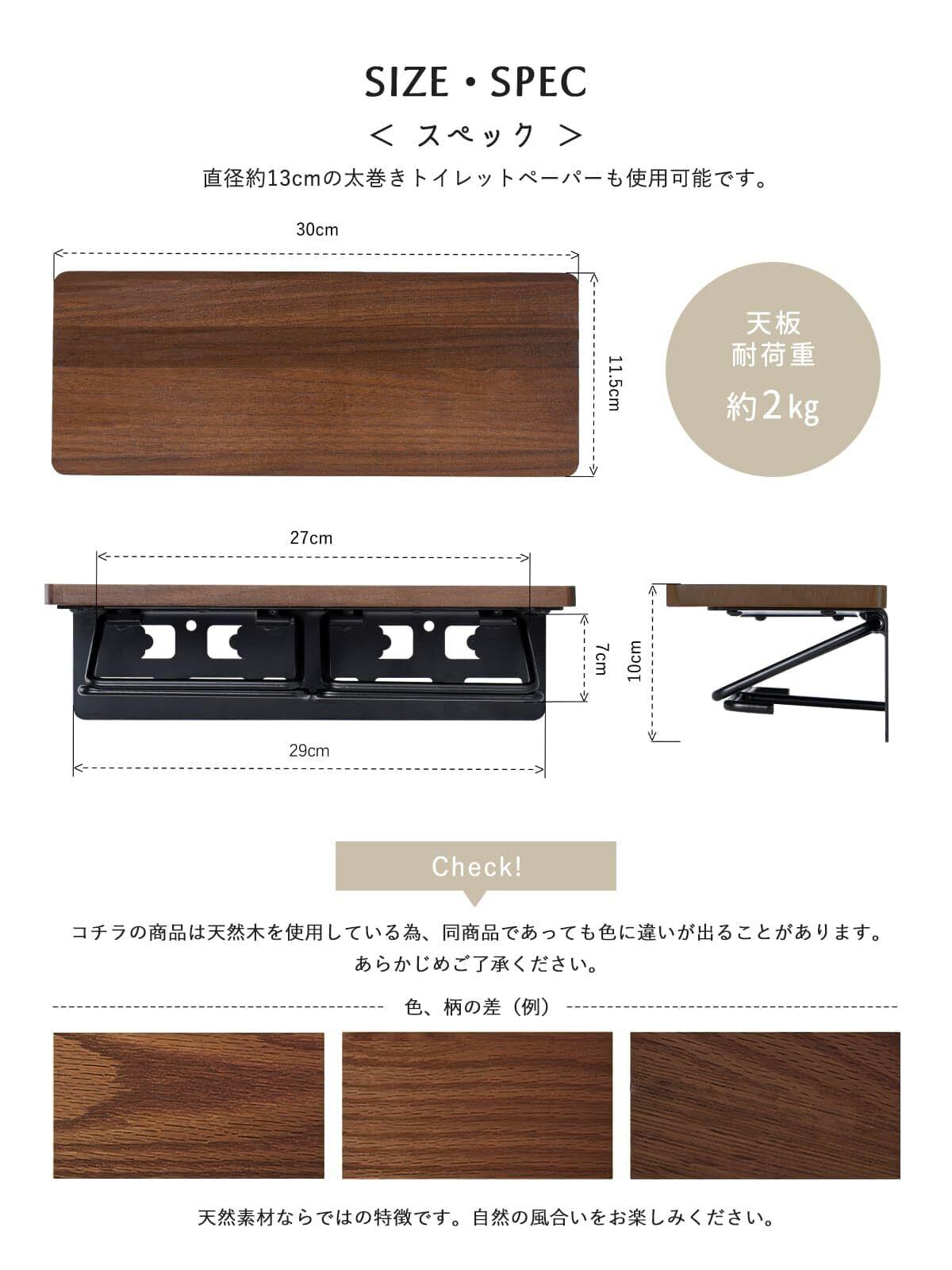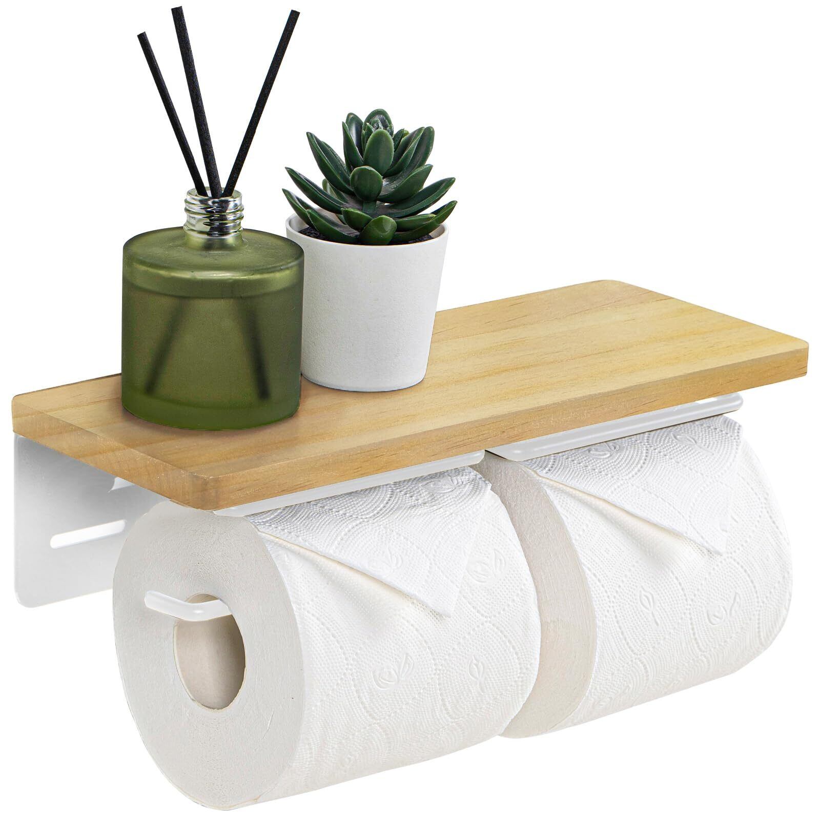 SELENEFF トイレットペーパーホルダー 2連 棚付き 木製 ダブル 北欧 木目 トイレットペーパー ホルダー スマホ置き 天然木 簡単設置 ツイン ペーパーホルダー (ナチュラル) | KSショップ
