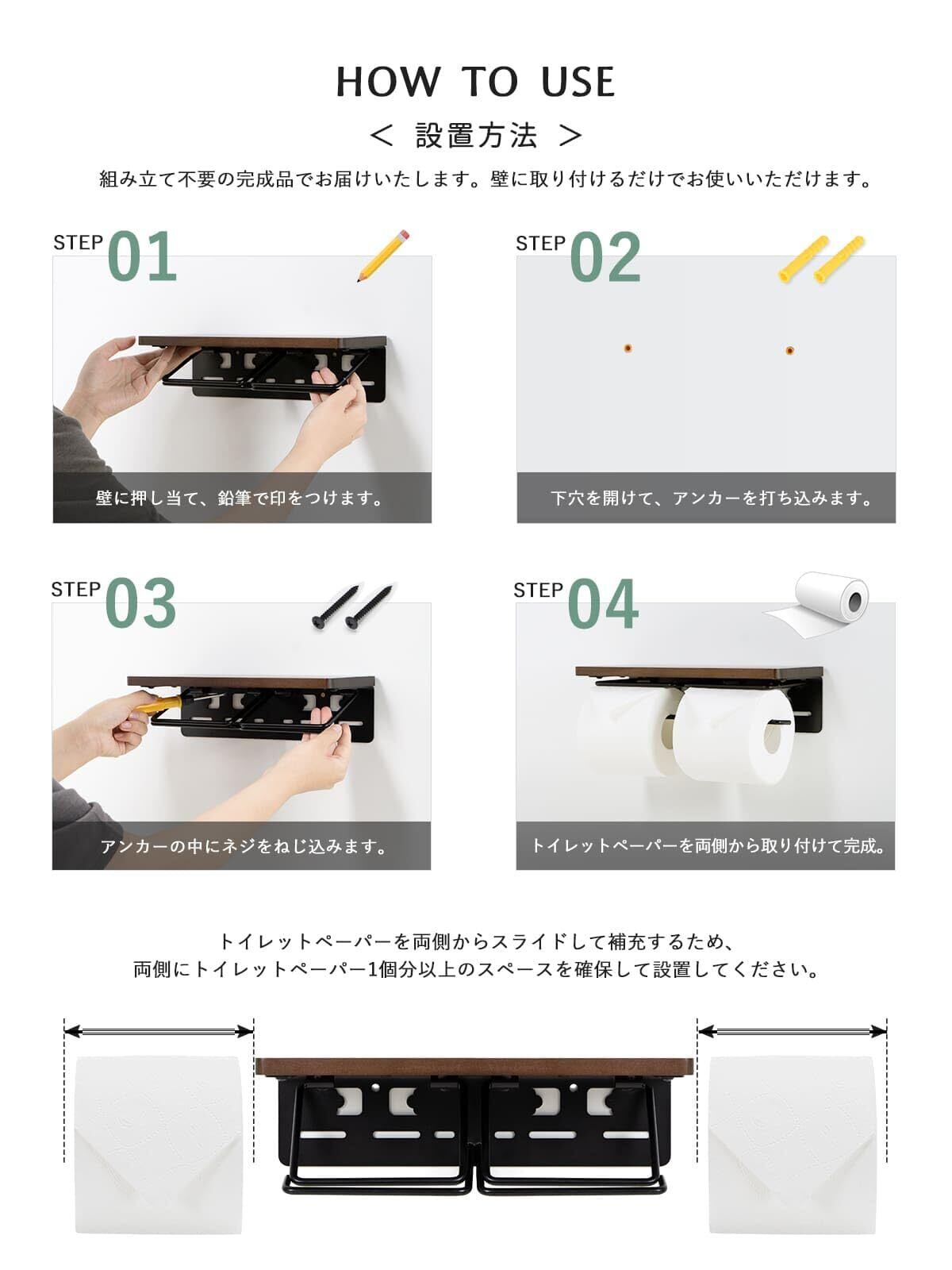 組み立て不要の完成品でお届けいたします。壁に取り付けるだけでお使いいただけます。