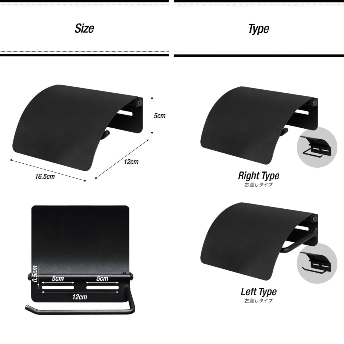 【商品詳細】 タイプ: ・右差しタイプ ・左差しタイプ サイズ: (約)幅16.5cm×奥行12cm×高さ5cm 材質: スチール 重量: (約)410g 特記事項: ※本製品には取付用のネジは付属されておりません。設置にはご使用されていたペーパーホルダーのネジをご使用ください。