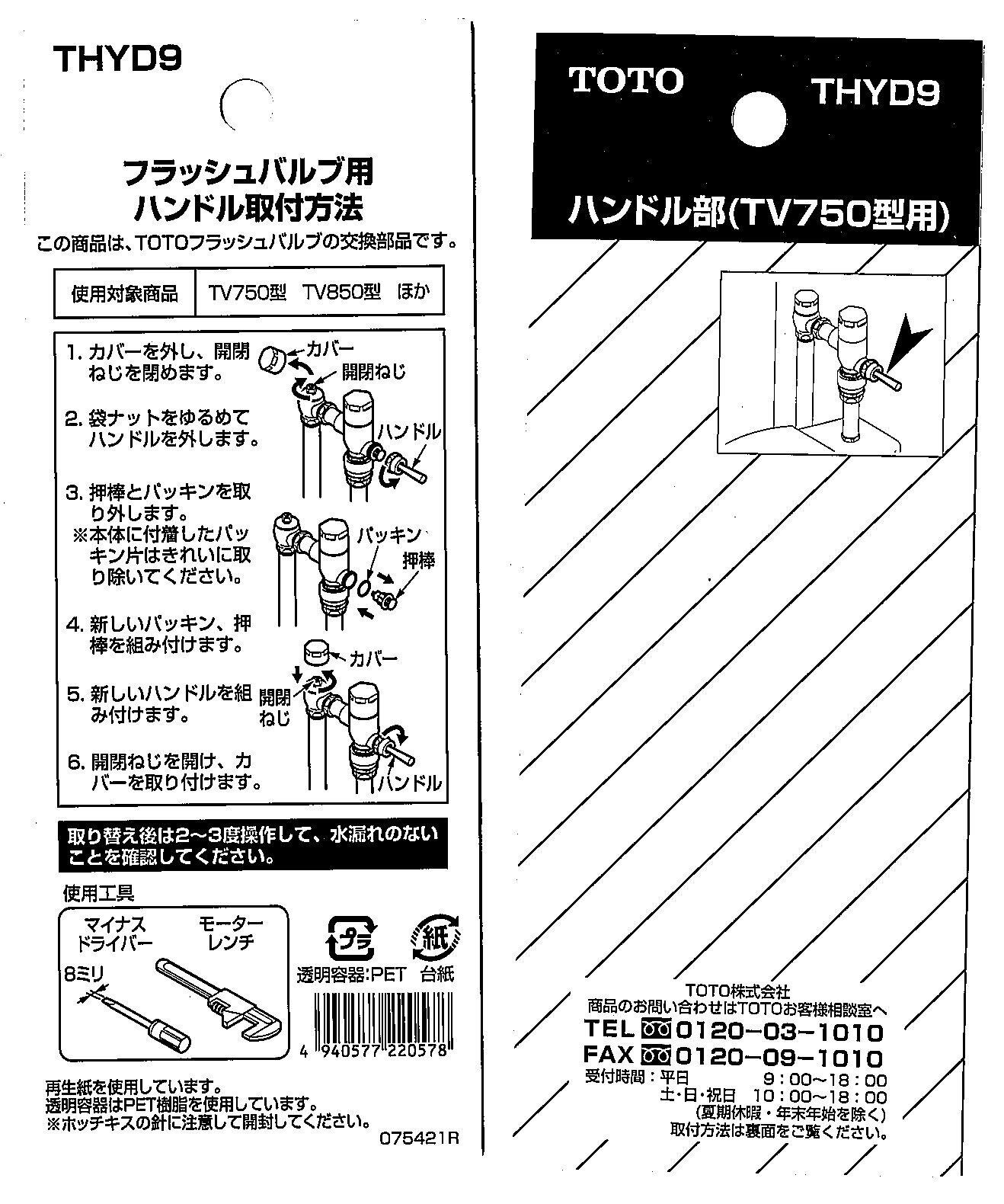 TOTO 大便器フラッシュバルブ用ハンドル部(TV750型用) THYD9