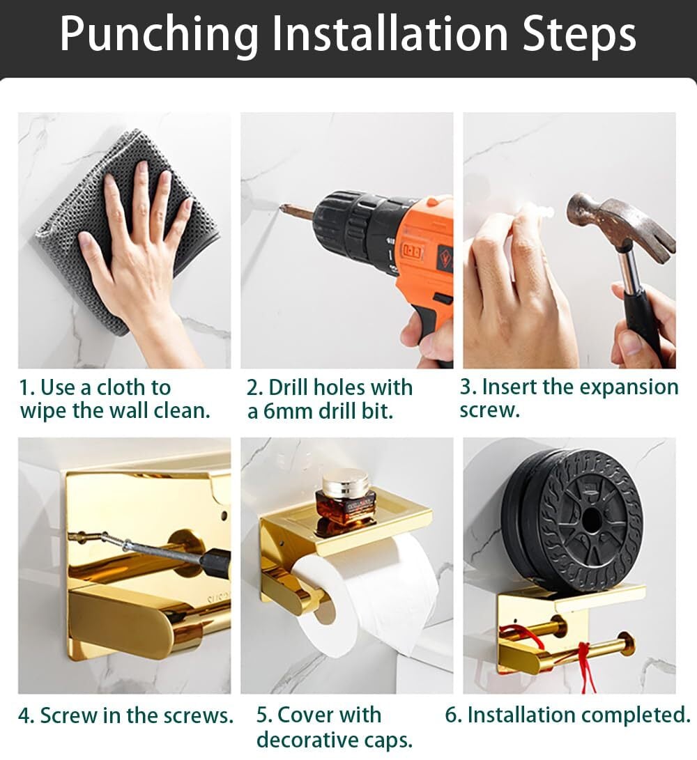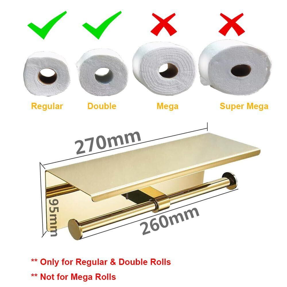 【KWQKEM】トイレットペーパーホルダー 2連 ステンレス 金色 おしゃれトイレっとペーパーホルダー棚付き 紙巻器 壁取り付けネジ付き 小物置き バスルーム キッチン用 簡単設置