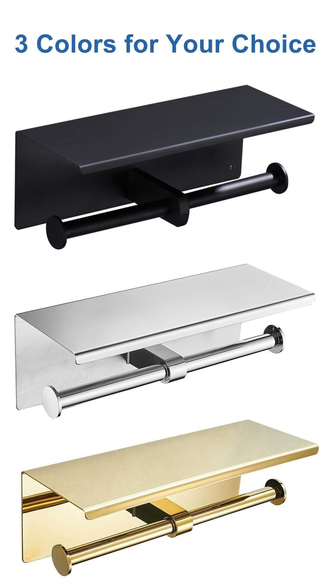 【使いやすさ抜群】棚付きの2連(ダブル)のトイレットペーパーホルダー。天板付なので小物置きとして使えるのでスマホや小物を置くことができます。差し込み式なので差し込むだけで簡単に補充できます。