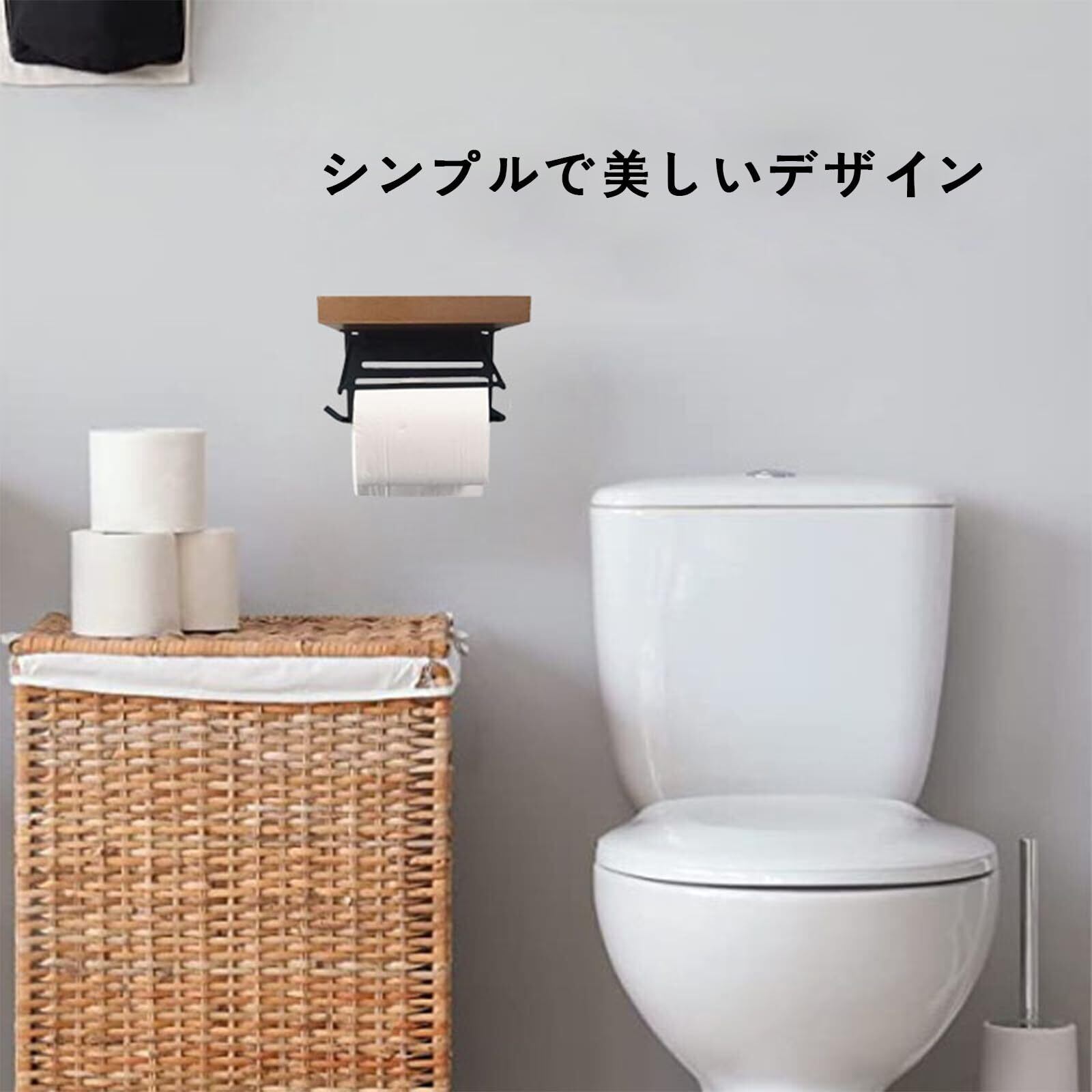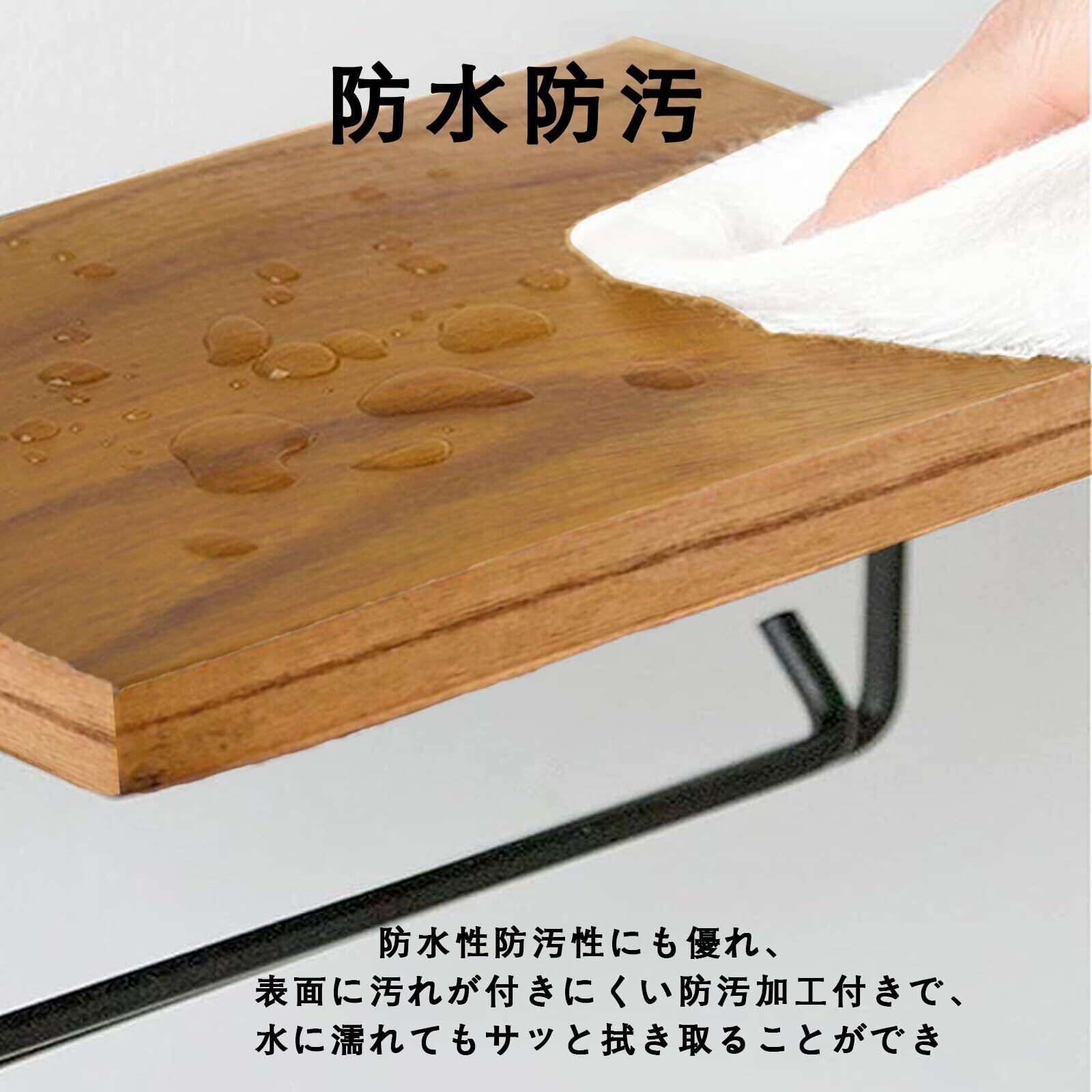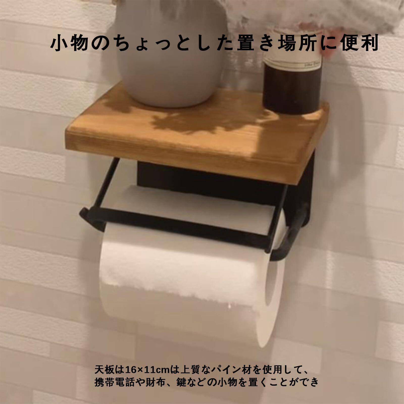 【小物を置くて大変便利】ペーパーホルダーは小物置き棚があり、スマホやお財布、生理用品などの小物を置くのに大変便利です。ウッド天板、小物を置いてアレンジも楽しめます。