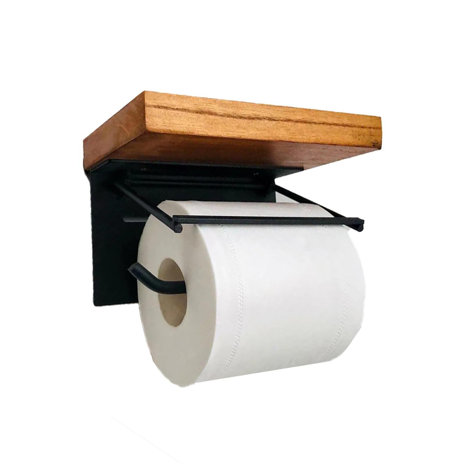 LOYELEY トイレットペーパーホルダー 木製 棚付き 木製 紙巻器 壁掛け 小物置き ペーパーホルダー シングル 和風 取り付け簡単 汚れに強い天板 おしゃれ トイレ 浴室 棚付きペーパーホルダー | KSショップ