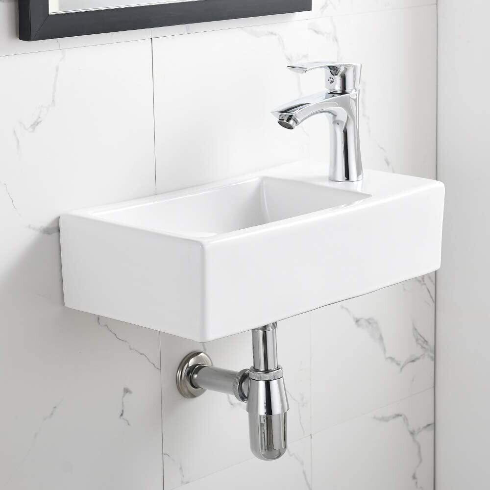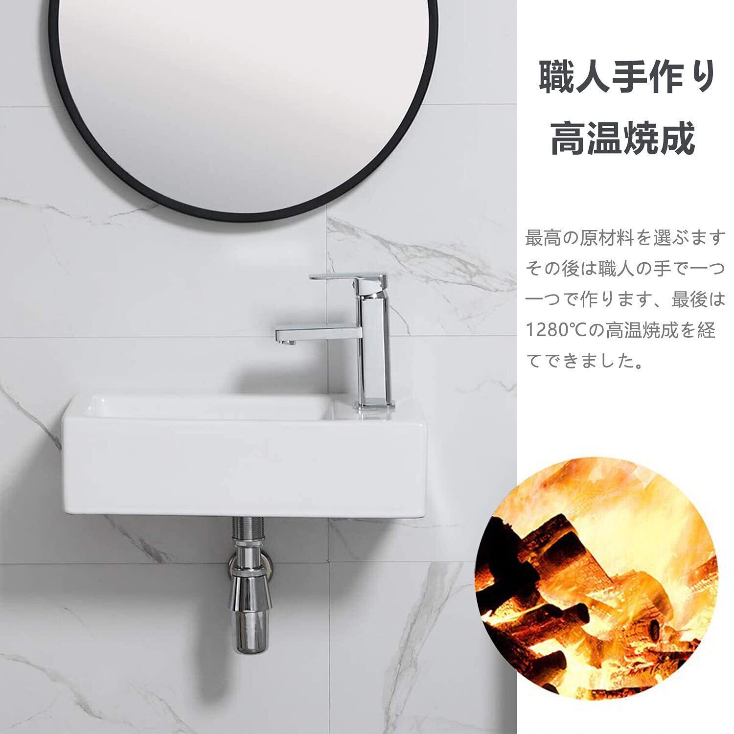 【壁排水セット付き】 ミニ 手洗い器 壁掛け 手洗器 コンパクト 小型洗面ボウル 洗面ボール おしゃれ 洗面台 手洗いボウル 壁付け型 陶器 375*190*95mm (右)