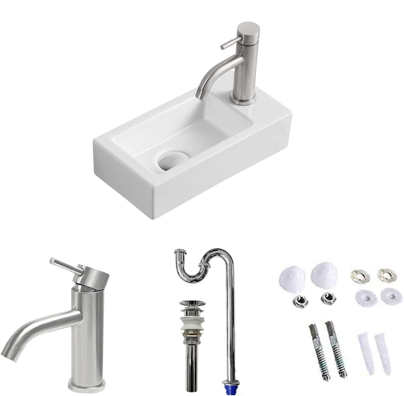 【Sトラップ排水セット付き】 手洗い器 壁掛け 手洗いボウル 壁付け型 375*185*95mm おしゃれ 手洗器 コンパクト 小型洗面ボウル ミニ型 洗面台 陶器 手洗い台