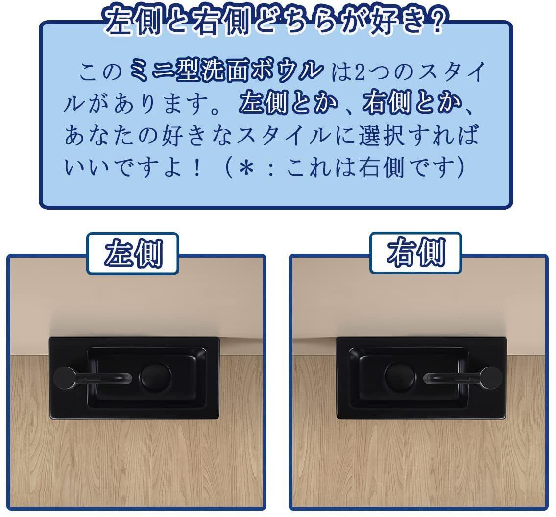 【Sトラップ排水セット付き】 ブラック 手洗い器 壁掛け おしゃれ 手洗器 コンパクト 小型洗面ボウル ミニ型 洗面台 手洗いボウル 壁付け型 陶器 手洗い台 375*190*95mm (右)