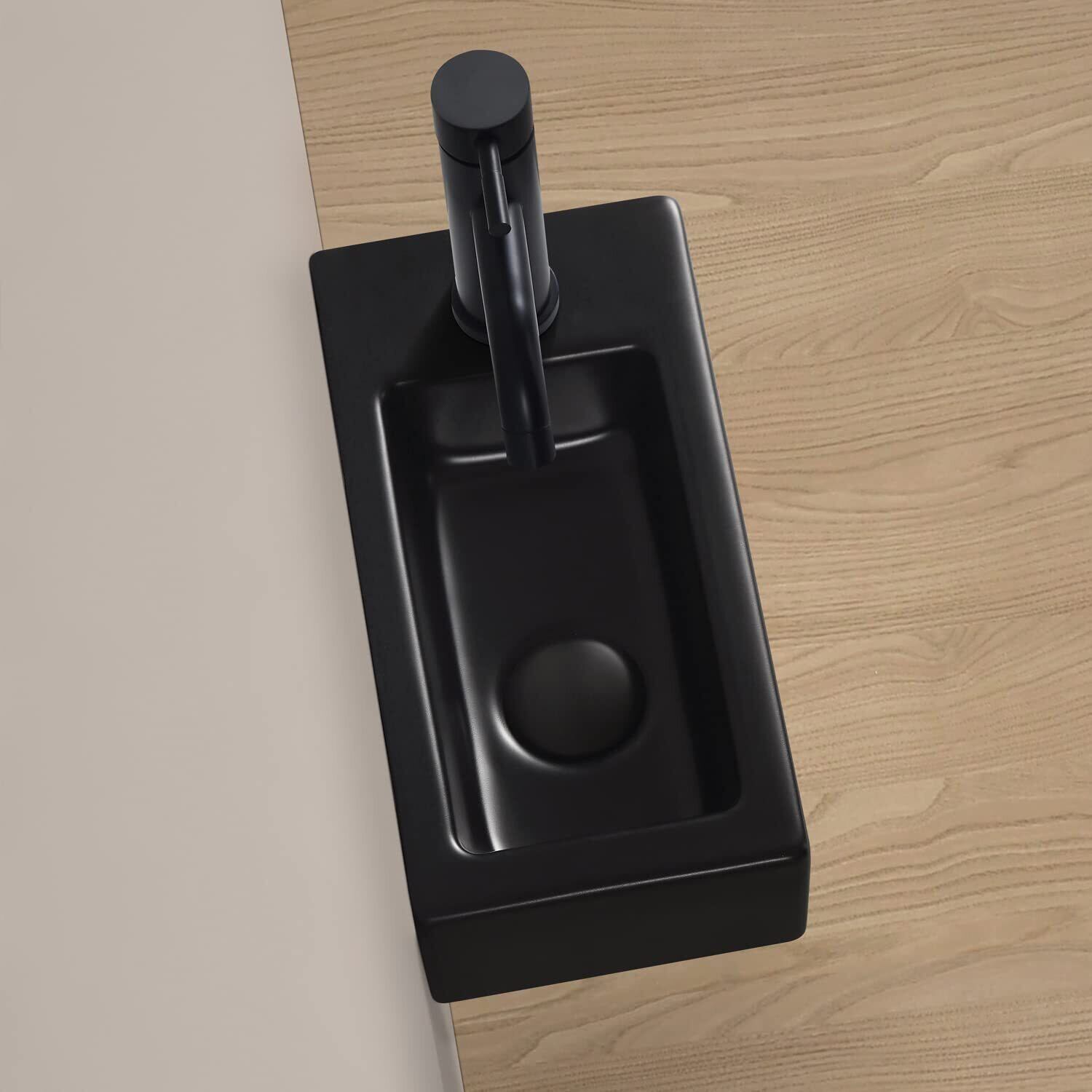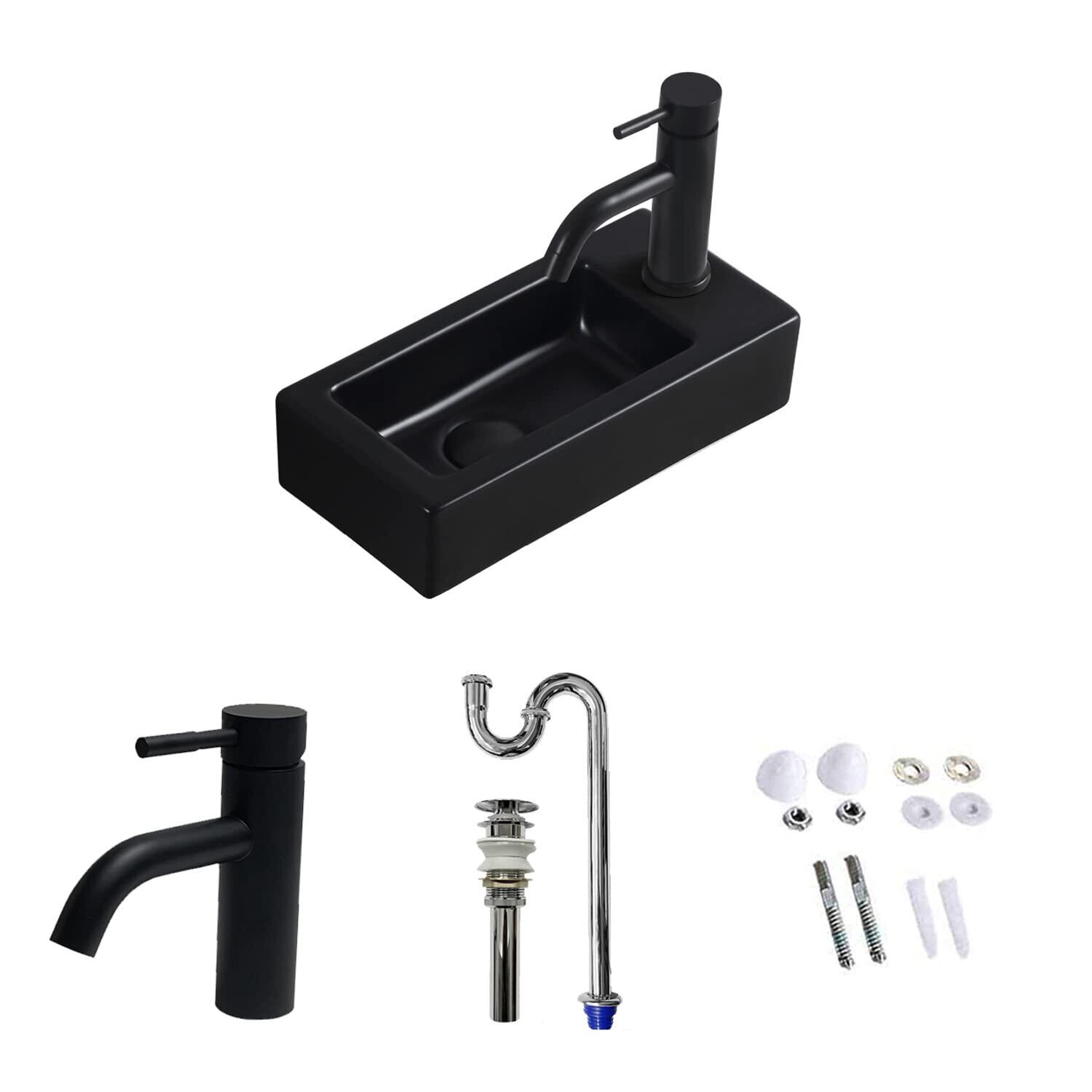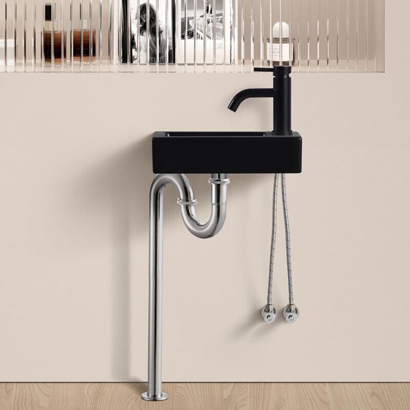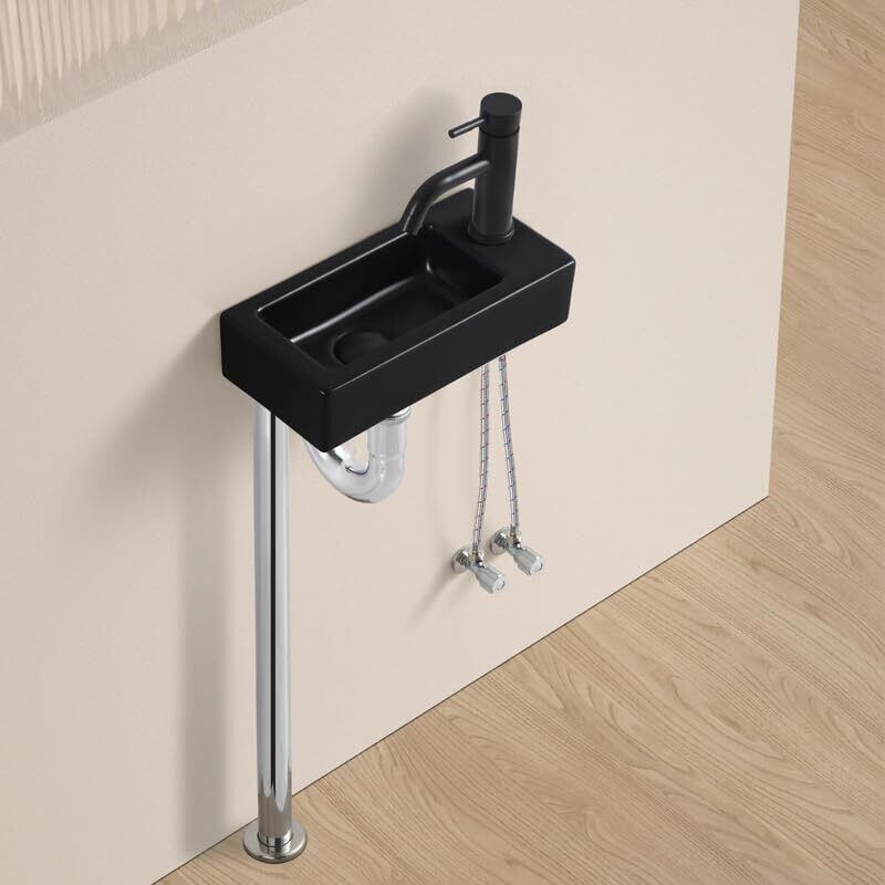 【Sトラップ排水セット付き】 ブラック 手洗い器 壁掛け おしゃれ 手洗器 コンパクト 小型洗面ボウル ミニ型 洗面台 手洗いボウル 壁付け型 陶器 手洗い台 375*190*95mm (右) | KSショップ
