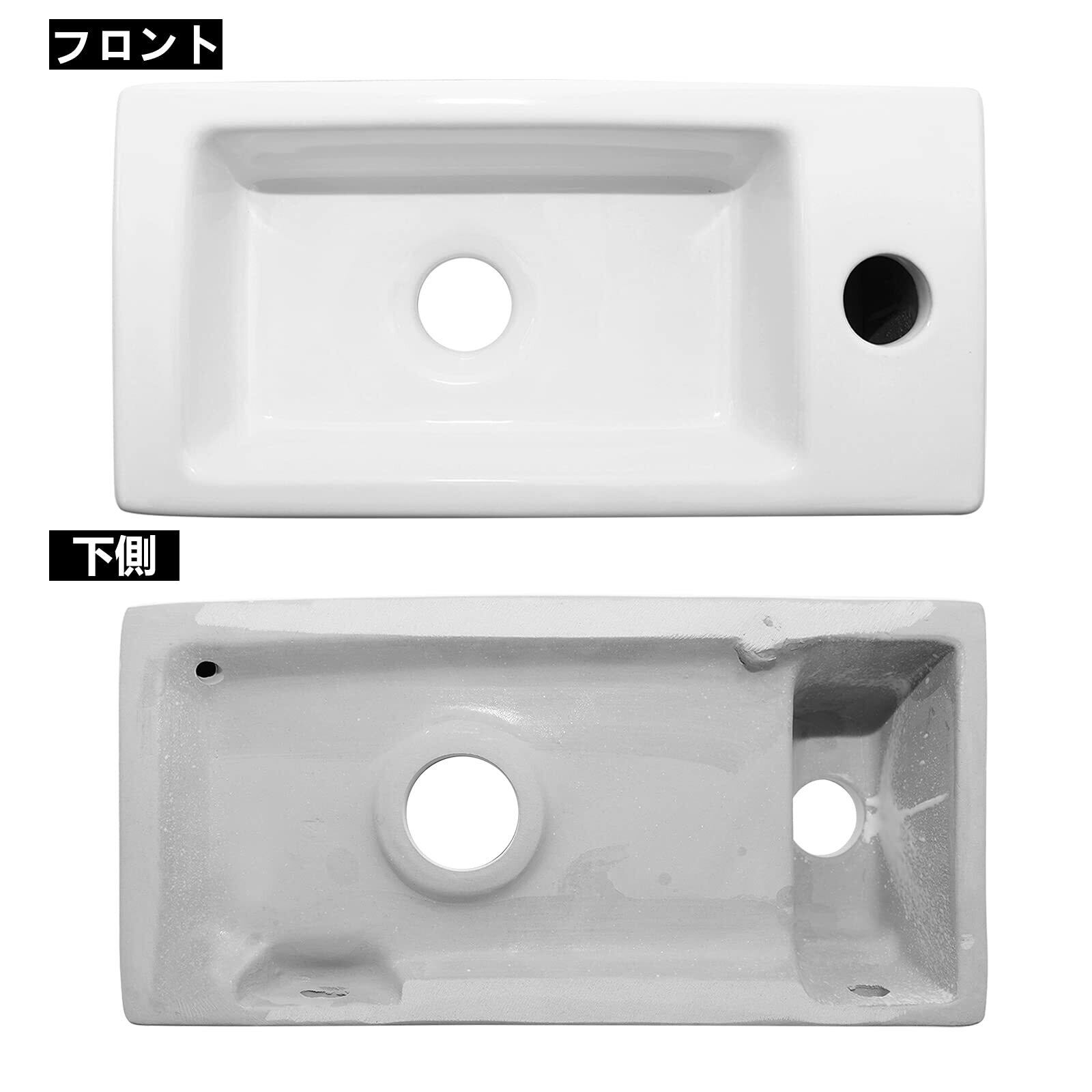 Rxakudedo 手洗い器 壁付け型 陶器製 小さなトイレに適し洗面器 蛇口 水栓&排水金具付き 和風 洋風 壁掛け おしゃれ シンプル 洗面台 キッチン用水栓 混合水栓 (右側洗面器+蛇口) | KSショップ