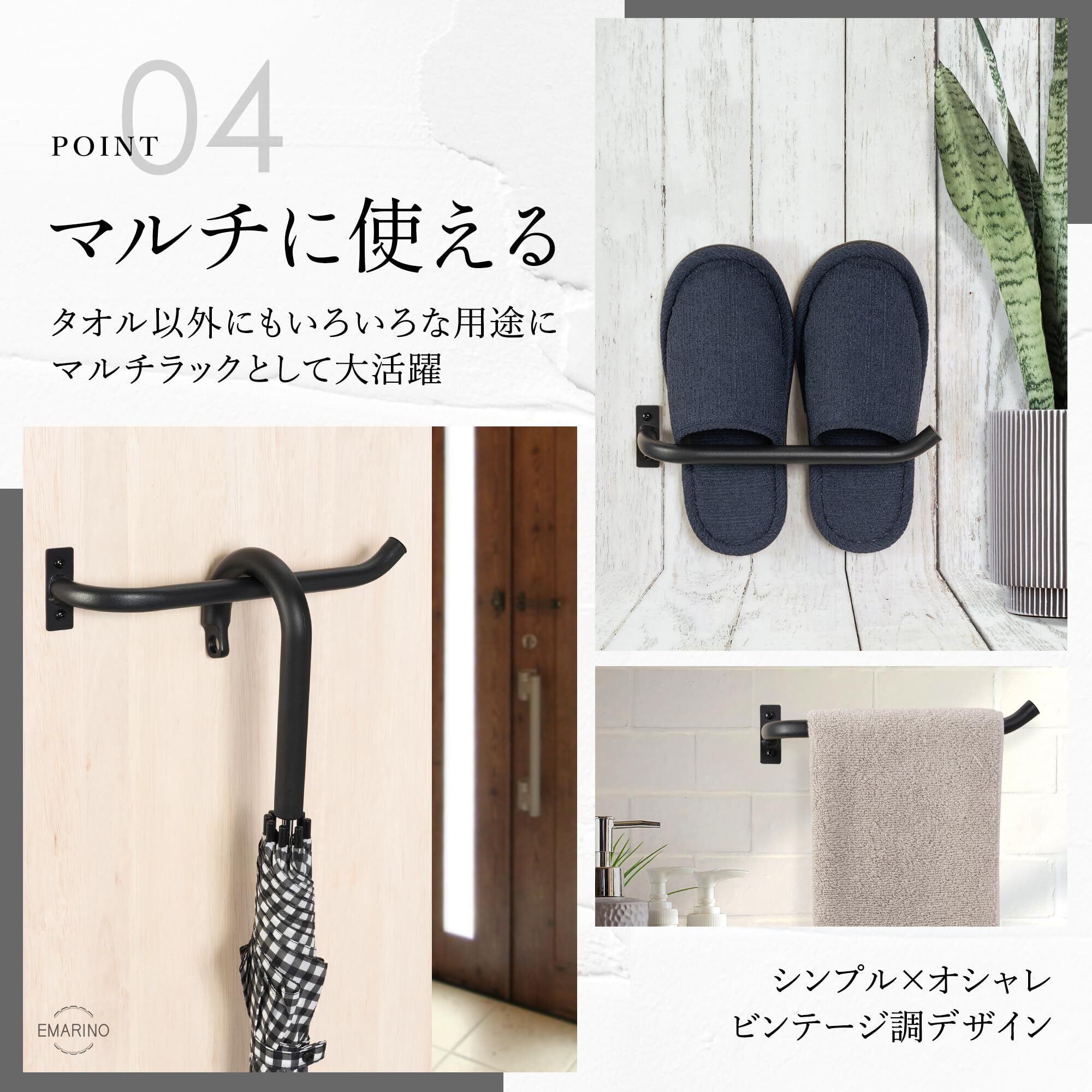 【マルチに使える】当社のタオル掛けは、タオルだけでなく傘置きやスリッパ収納など、幅広い用途に転用可能です。