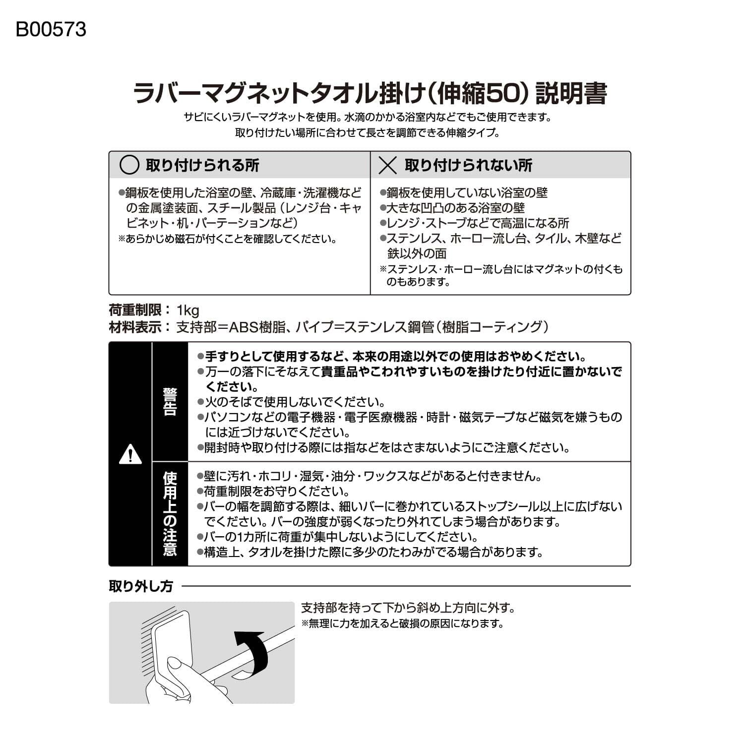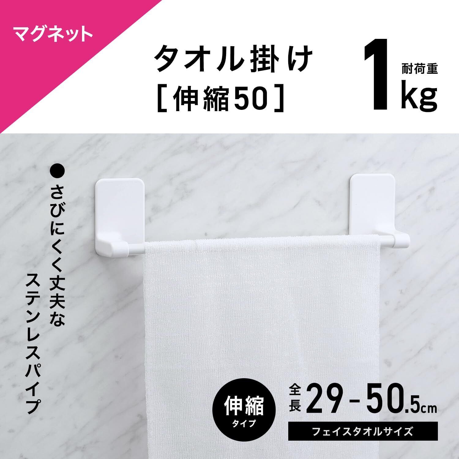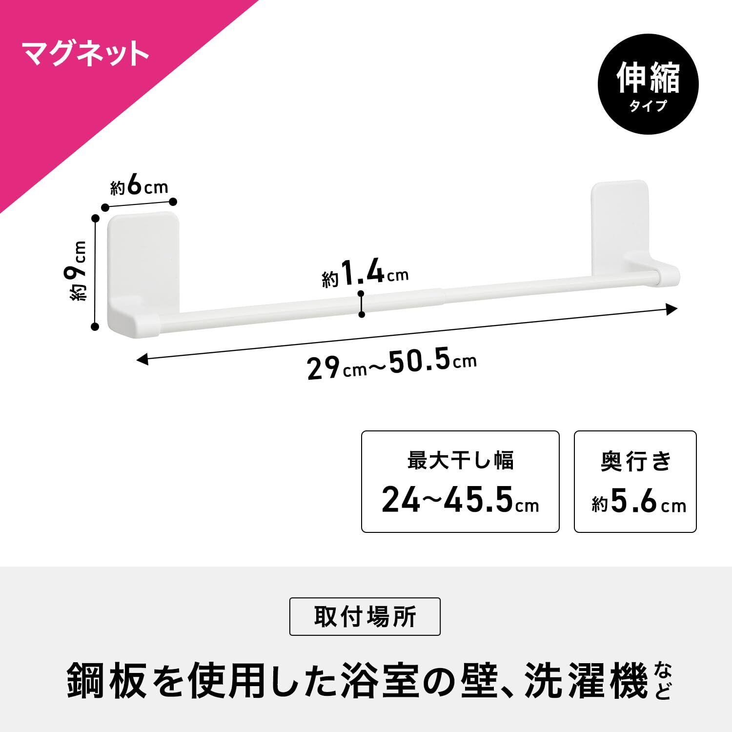 ラバーマグネット 伸縮 タオル掛け 伸縮幅 29~50.5cm(干幅24~45.5cm) 耐荷重1kg フェイスタオルサイズ