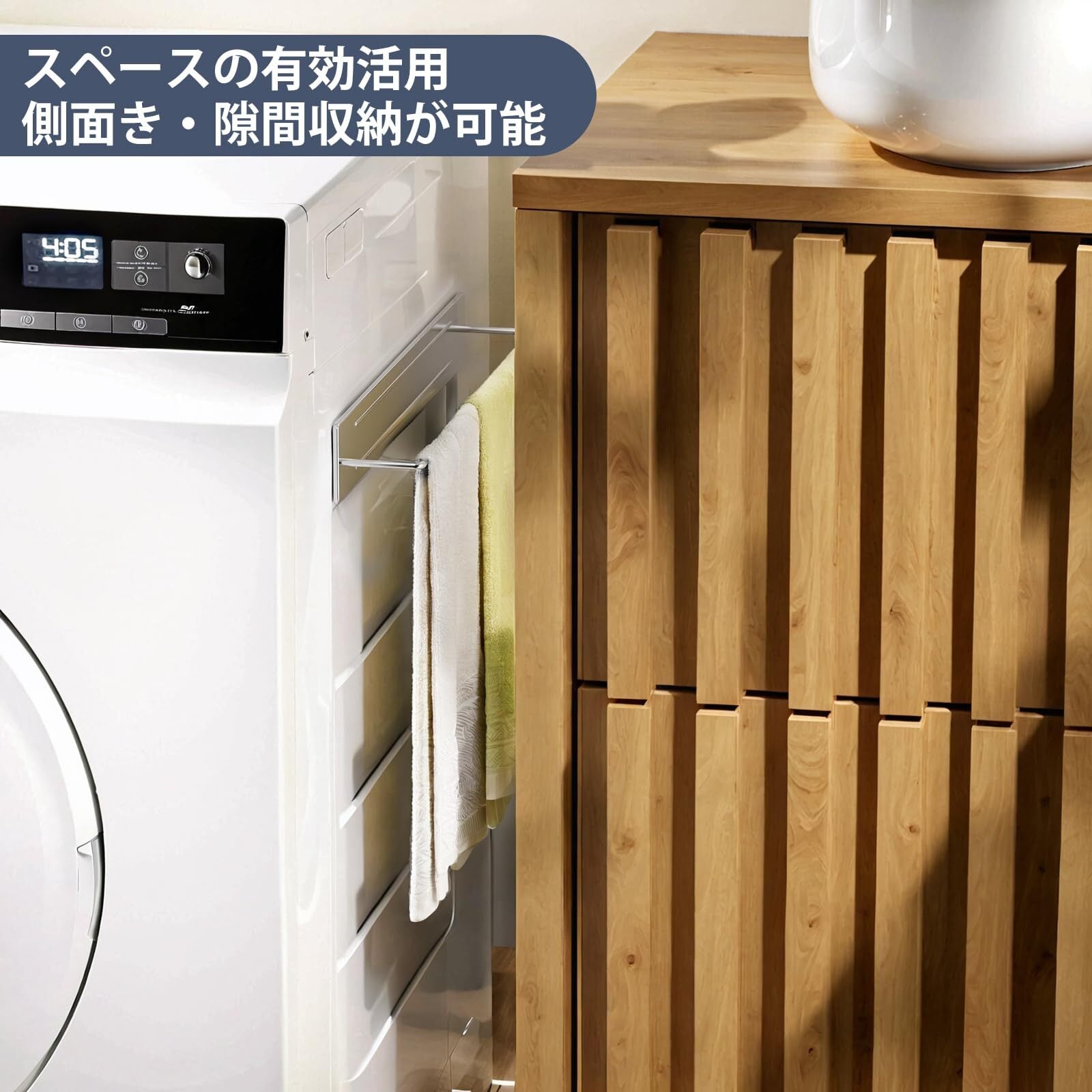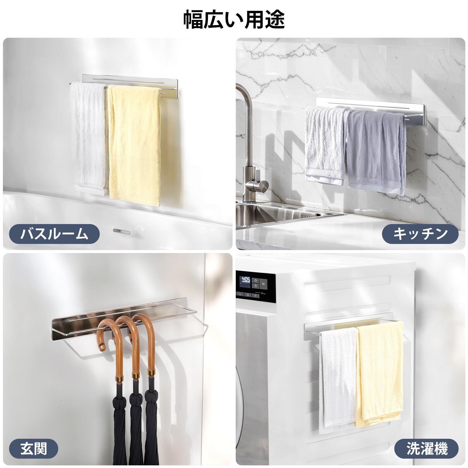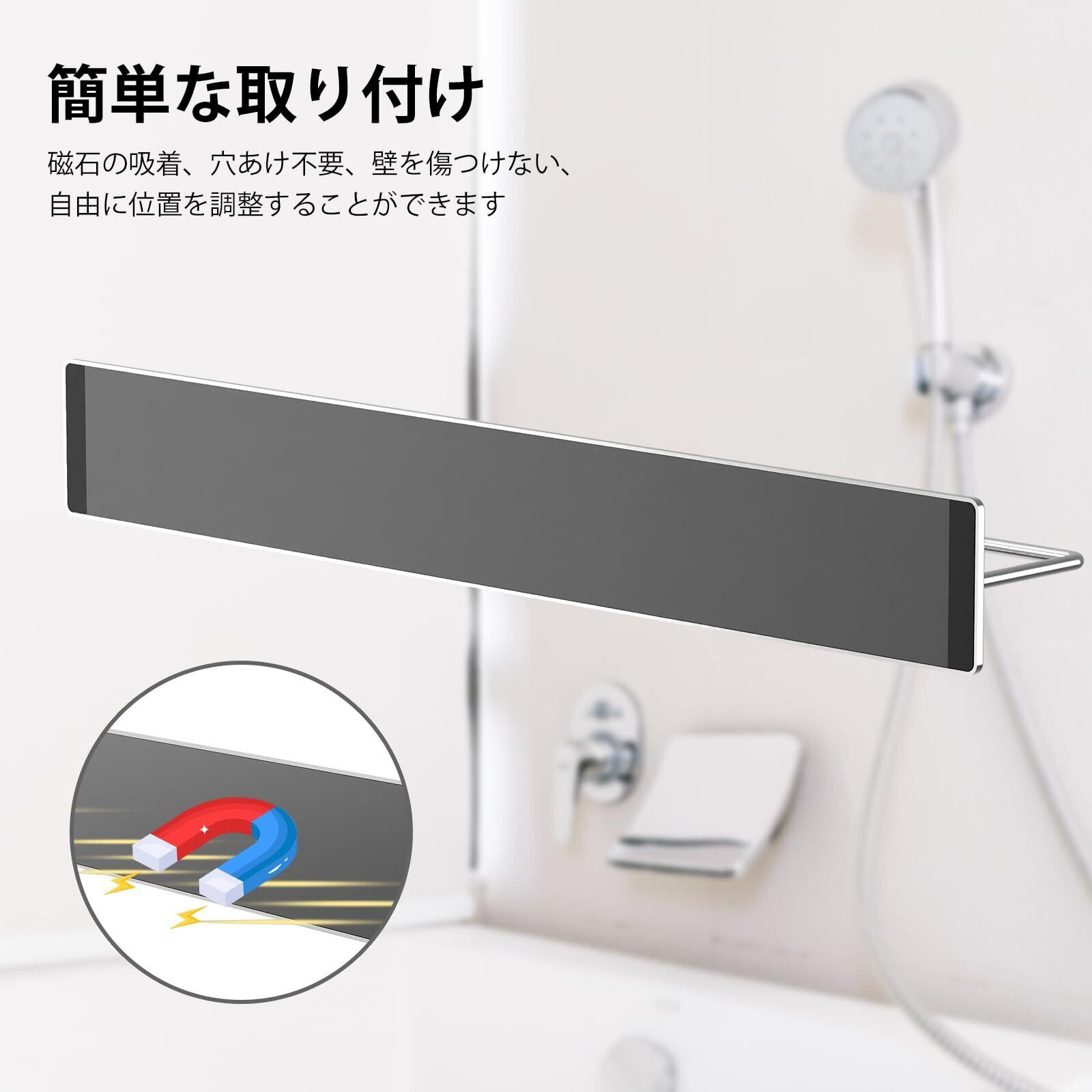 【浮かせる収納】このマグネットタオルハンガーは取り付けが簡単で、自由に設置場所を選べます。浴室、洗面台、トイレ、洗濯機の側面などに広く使用できる。省スペースで収納スペースを有効活用。