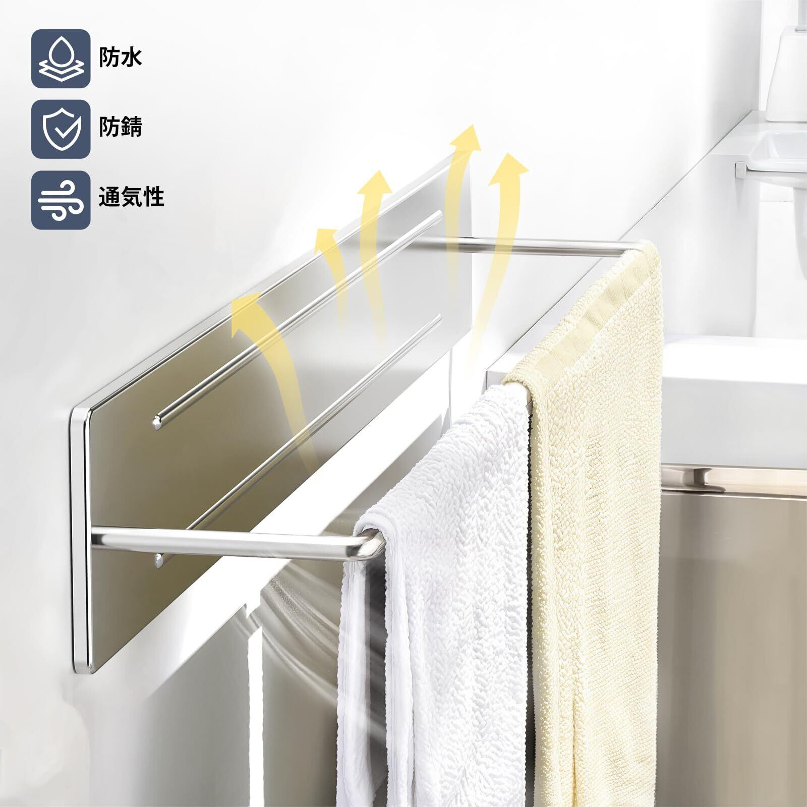 【お手入れ簡単】クロスバーとベースの間にある広い吊り隙間は、水が溜まるのを防ぎ、通気性が良く、タオルを衛生的に保つことができます。シンプルな形状なので掃除もしやすいと思います。