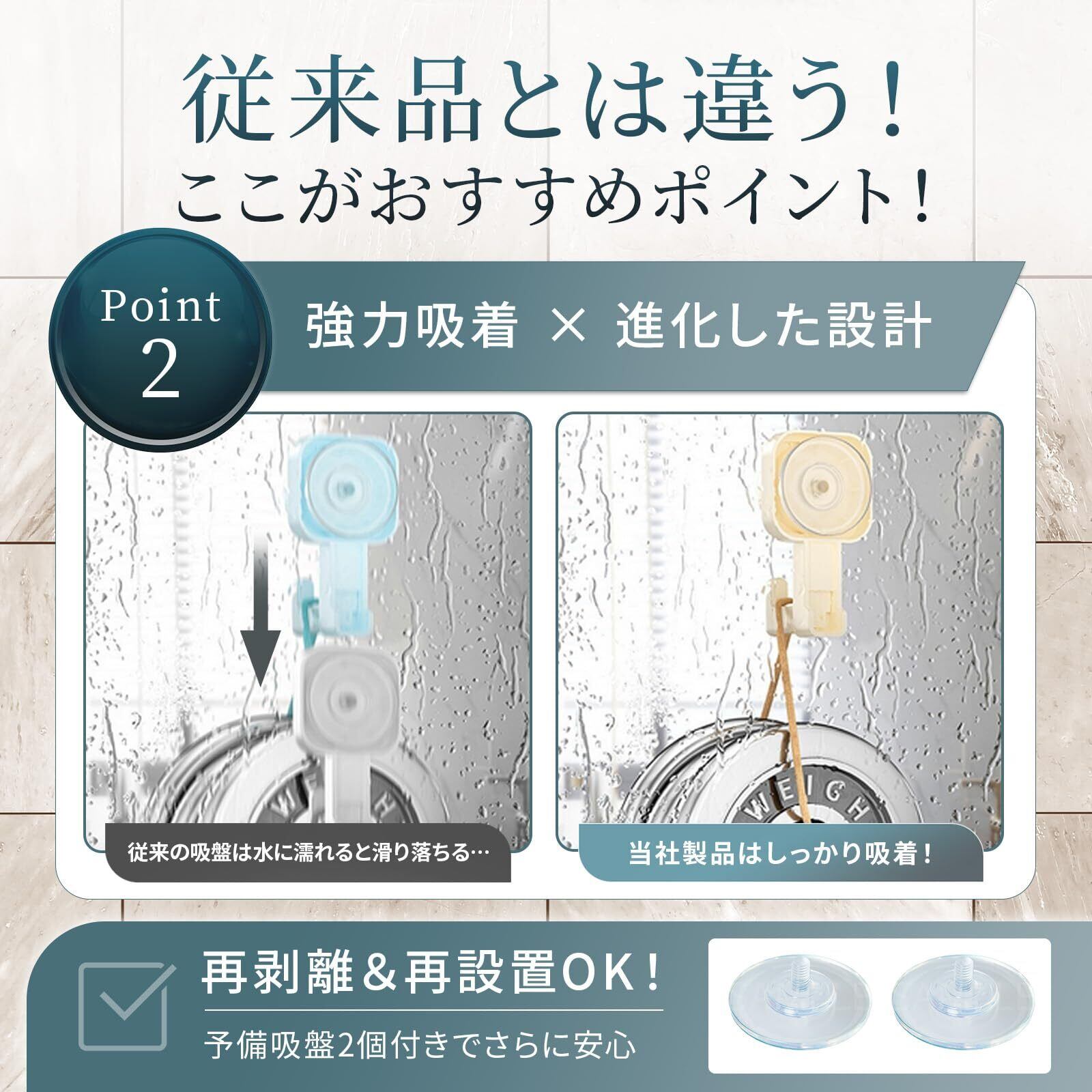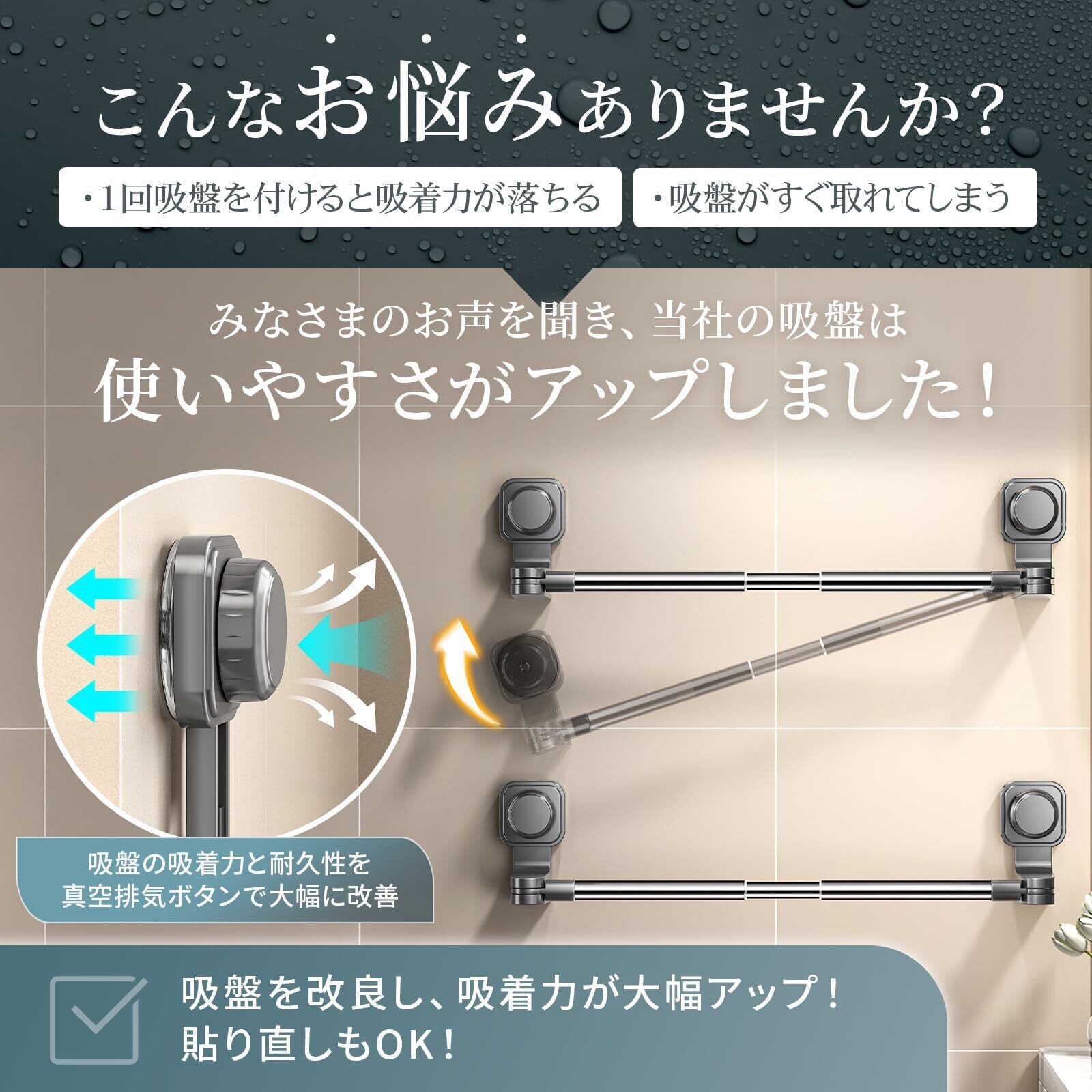 【強力吸盤でしっかり固定、浴室や洗面所でも安心】TPEポリマー素材の吸盤で安定感抜群。浴室タオル掛けや洗面所のタオルハンガーとして、ズレずに安定して使えます。