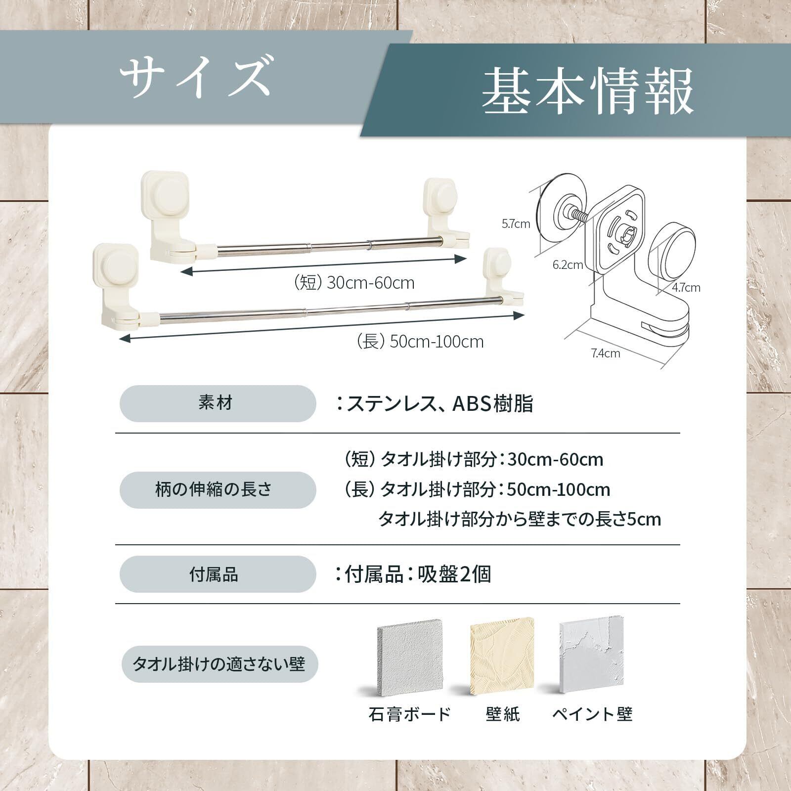 【伸縮式バーでスペースに合わせて長さ調整OK】使いたい場所や掛けたい幅に合わせてバーの長さを調節可能。バスタオル掛けやタオル干しにも便利です。