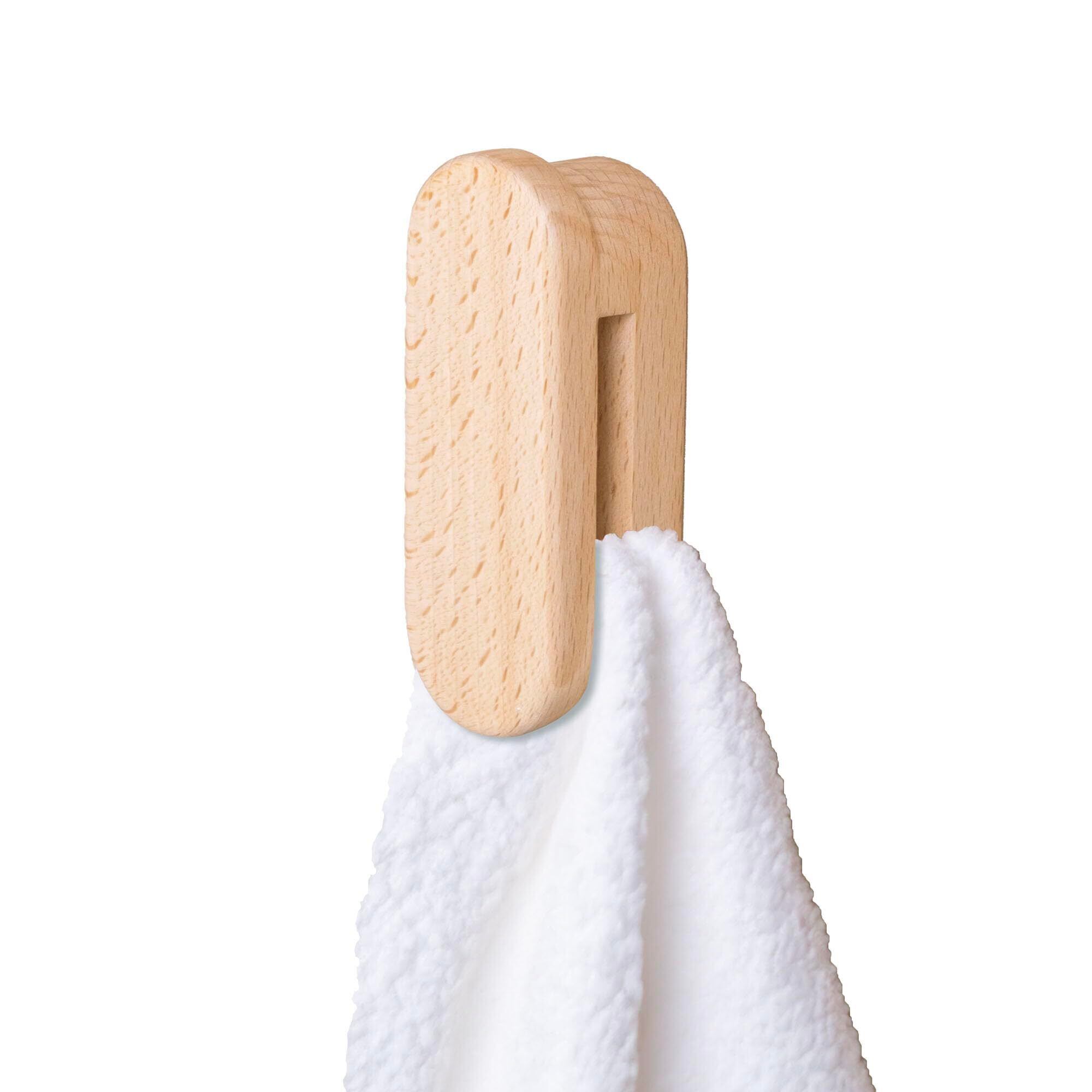 槿ノ里 木製 丸い タオル掛け 天然木 北欧風 粘着シートタイプ タオルハンガー タオルバー 両面テープ付き (1個, ブナ)