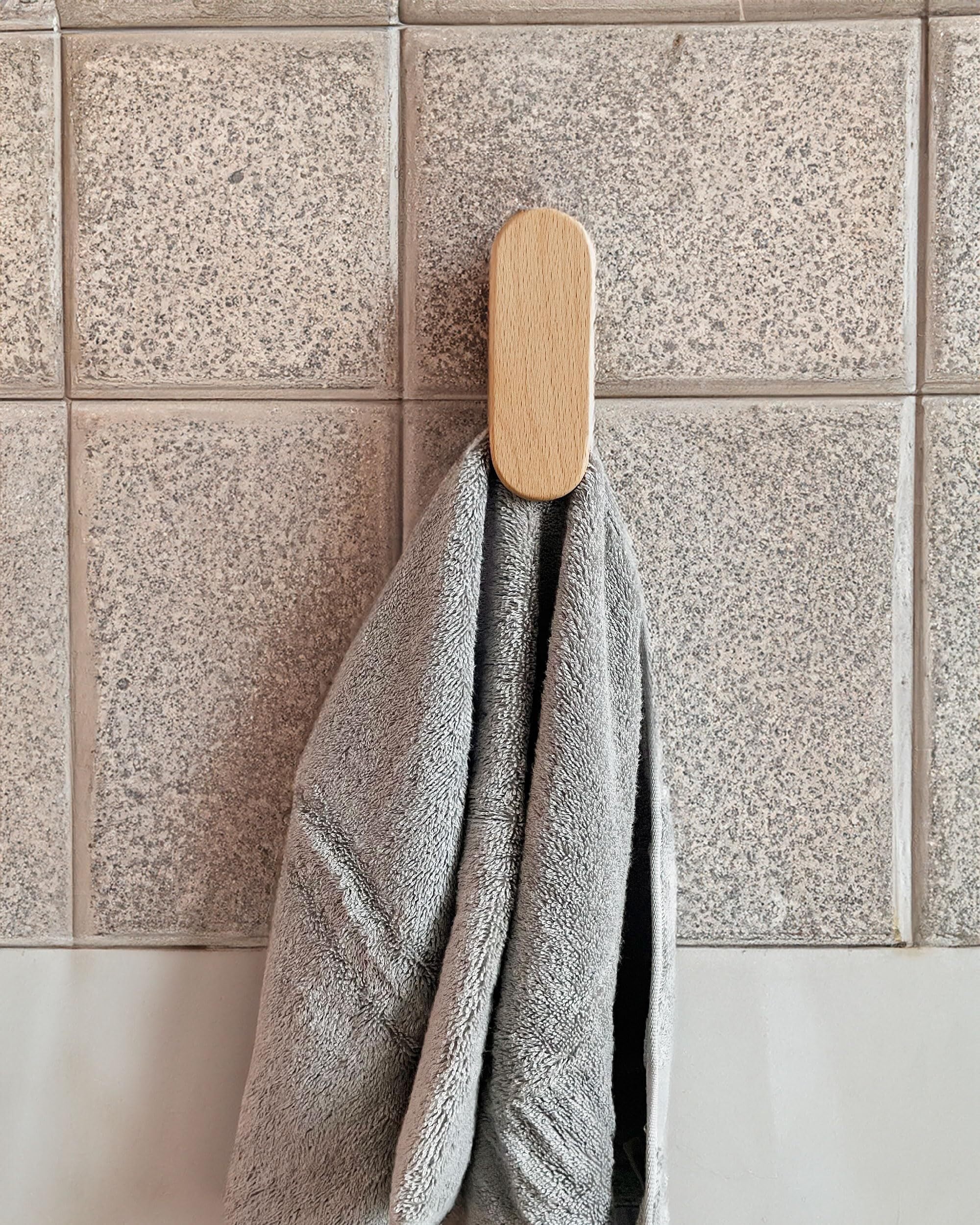 インテリアに馴染むナチュラルテイスト:発の人気商品である四角いタオル掛けからインスピレーションを受け、丸いタオル掛けとしてコンパクトかつ精巧な外観に再設計!従来の四角いタオル掛と比べ、約1.5倍のスペースを節約が可能。
