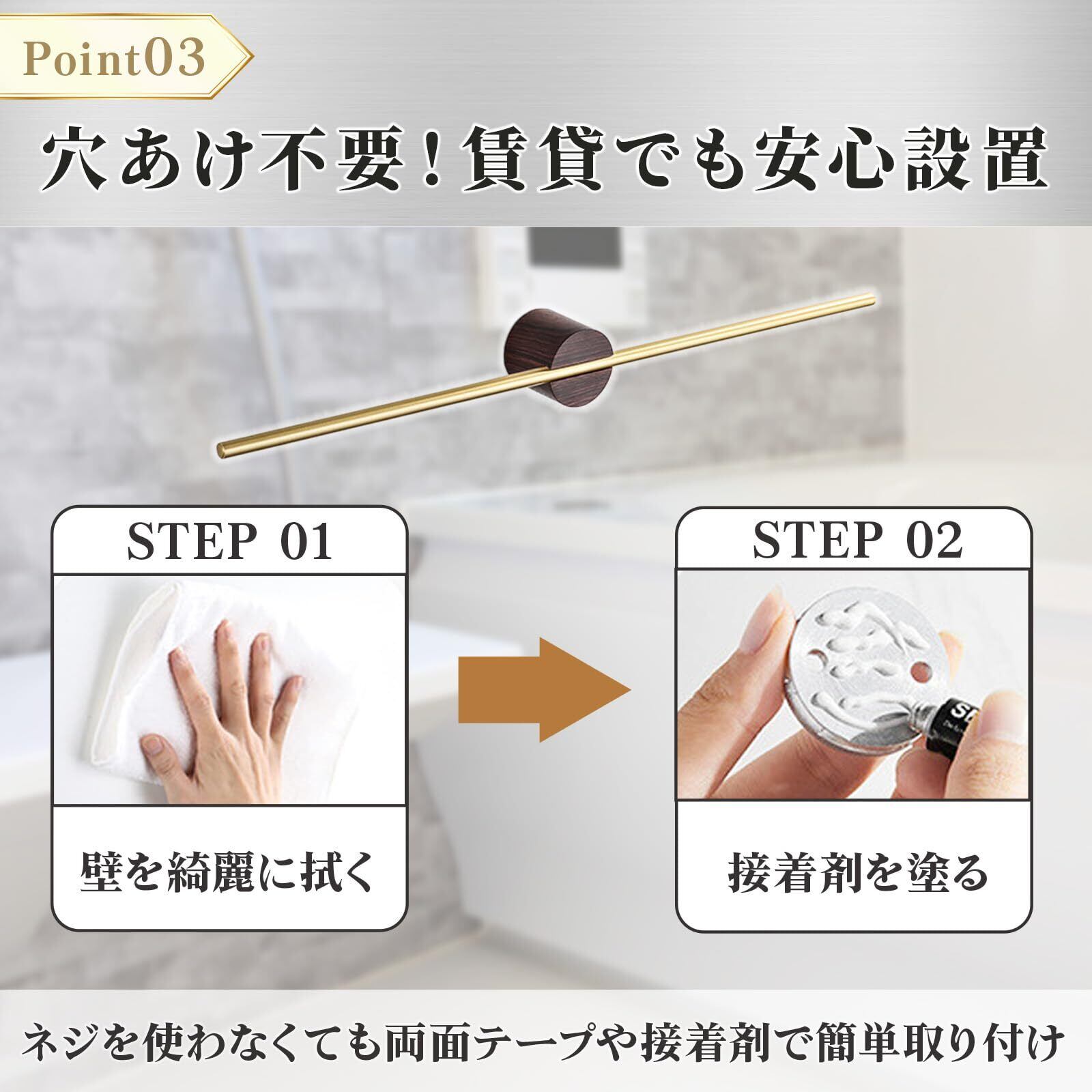 【穴あけ不要!賃貸OKの簡単設置】壁を傷つけずに設置できるため、賃貸住宅やタイル・ガラス面でも安心。接着剤、両面テープで簡単に取り付けでき、DIY初心者でも手軽に設置可能。高耐久な固定力で、タオルやバスローブ、掃除用品、軽量バッグなど様々なアイテムをしっかり支えます。設置場所を選ばず、玄関・洗面所・トイレ・キッチンと幅広いシーンで活躍。穴を開ける手間を省きながら、空間をすっきり美しく整えます。