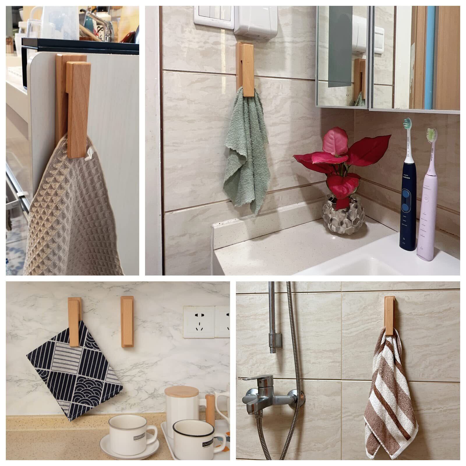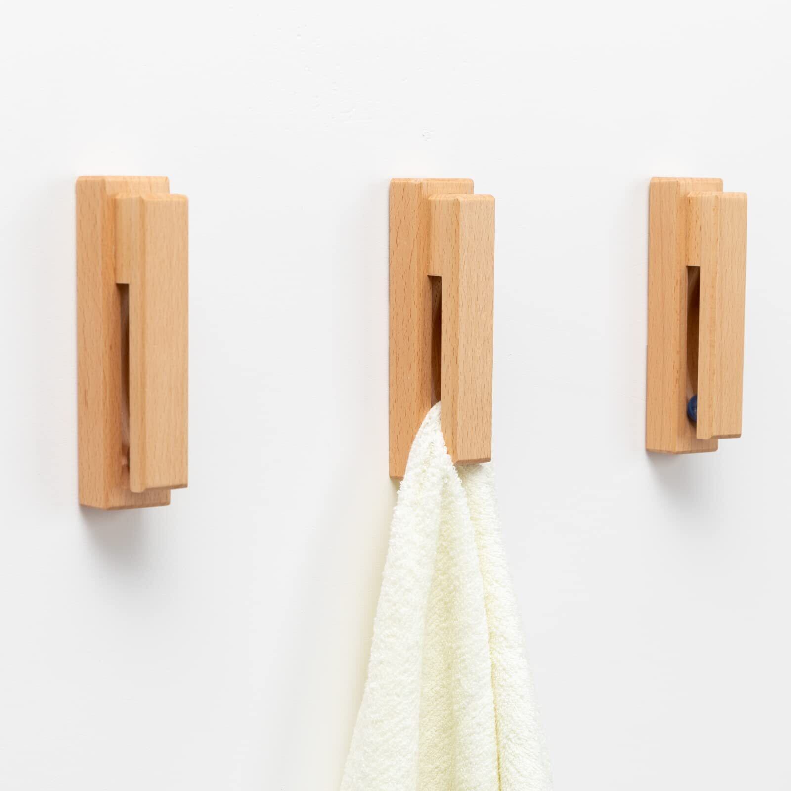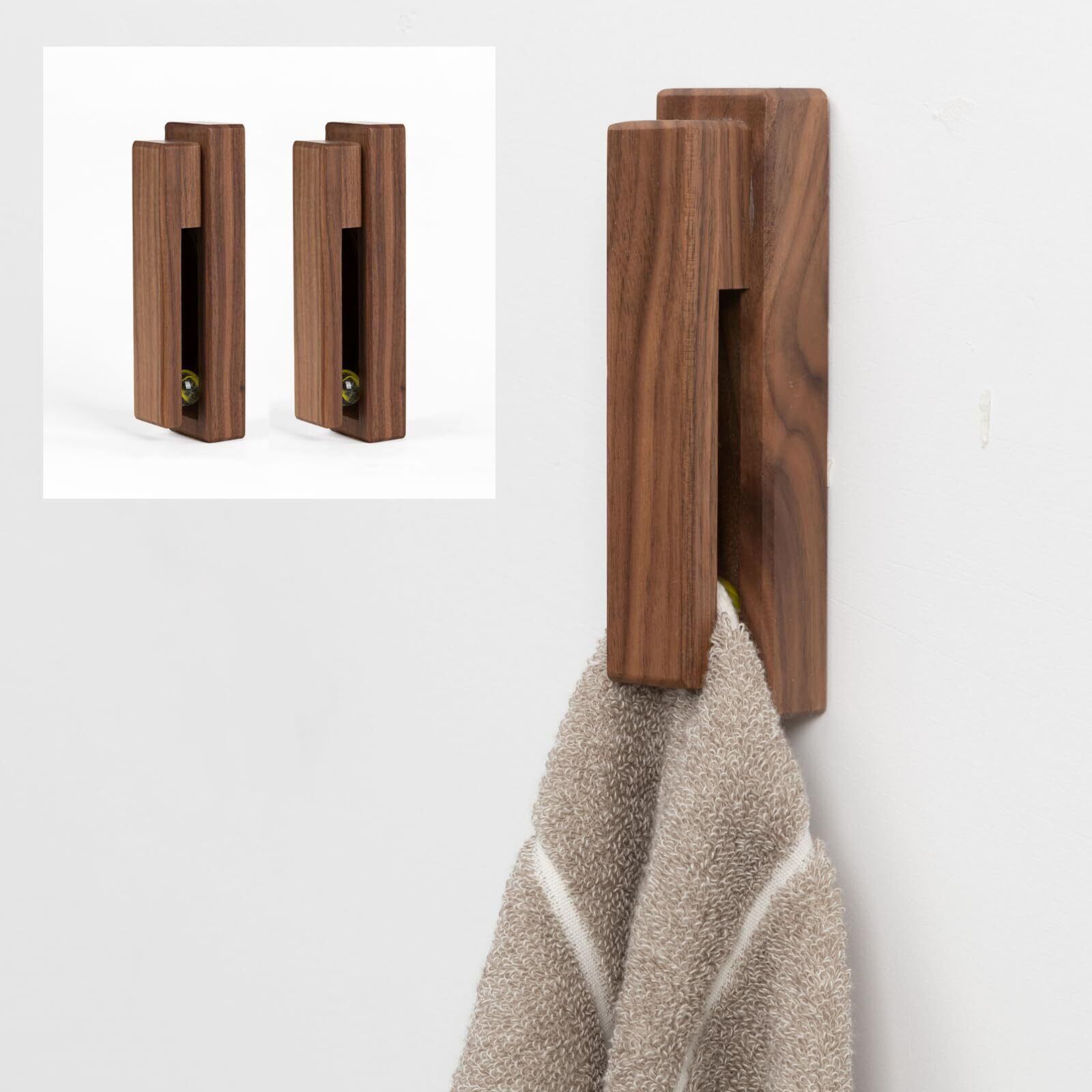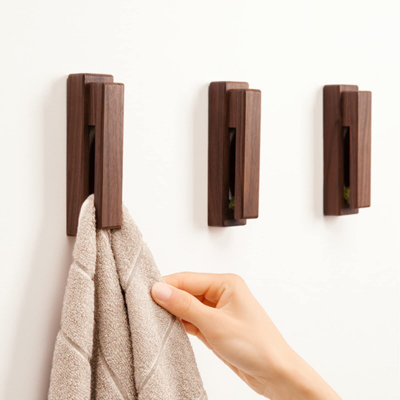 doandfa タオル掛け タオルハンガー タオル掛け 洗面所 キッチン トイレ お風呂 粘着 タオル掛け 木製 天然木 おしゃれ (2, クルミ)