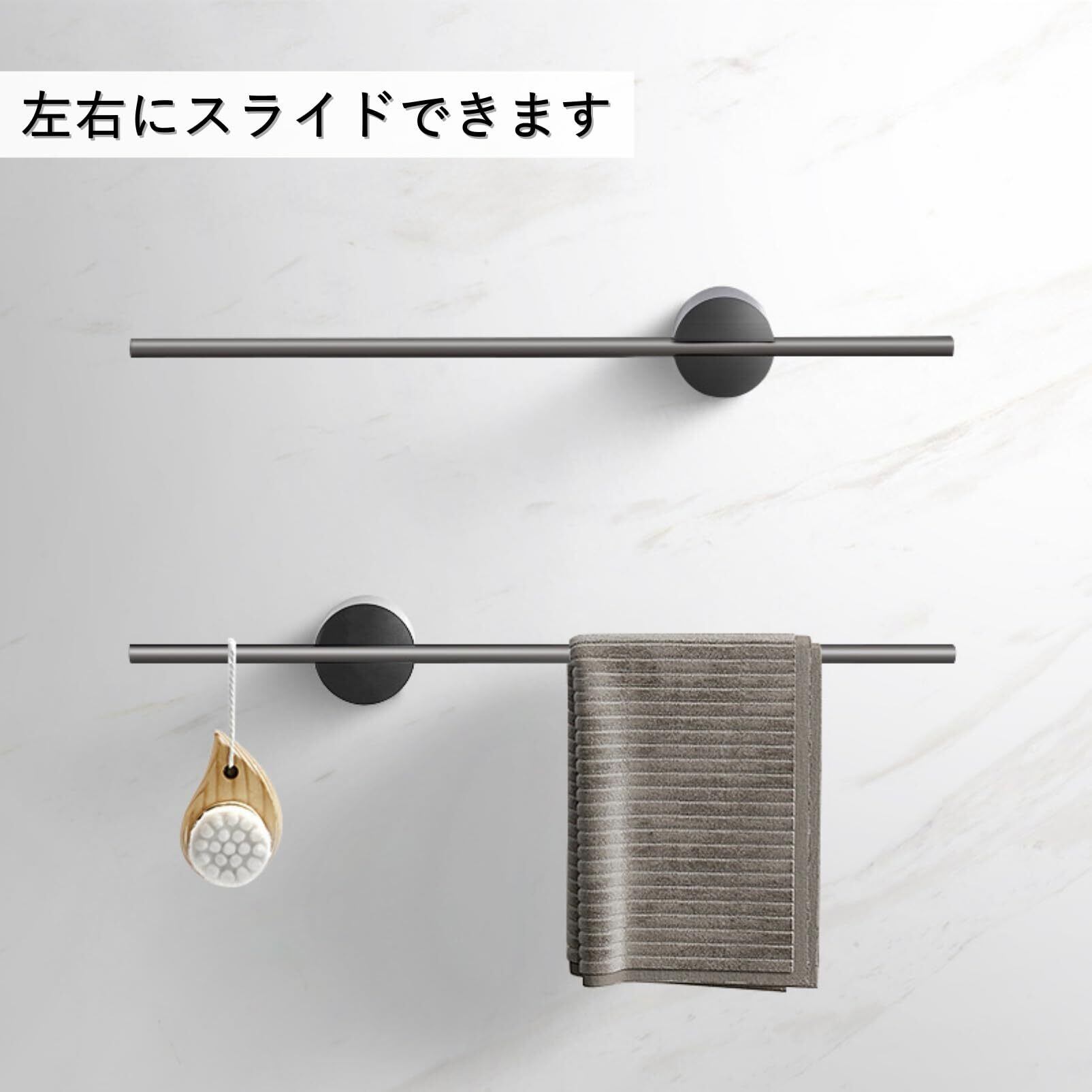 このタオルバーは、支持部がスライド式で、掛けるものの大きさに合わせて調整できます。可動式の支持部は左右にスライドすることができ、使いやすさを追求しています。