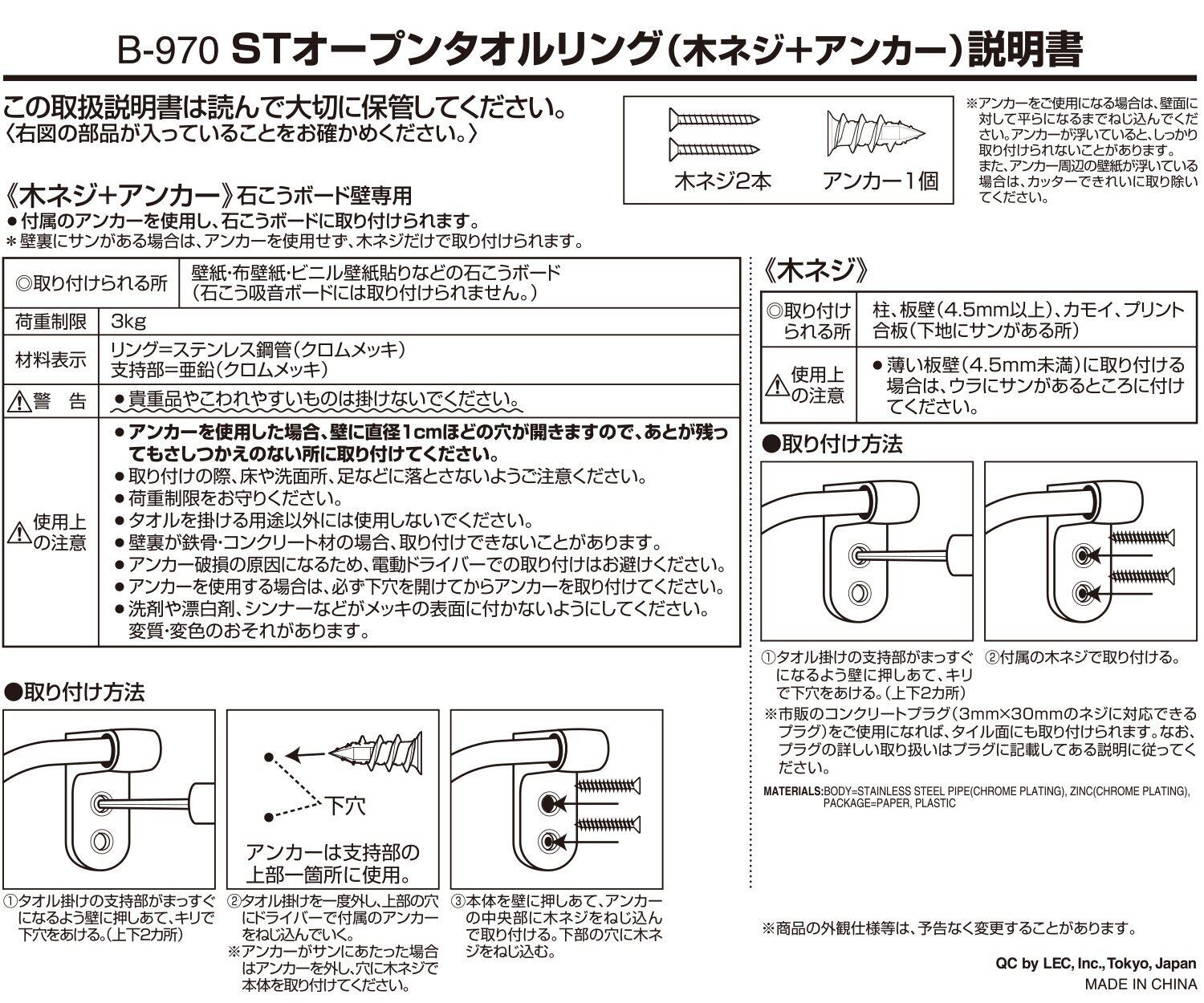 レック ストロング オープン タオルリング ( タオル掛け ) 木ネジ + アンカー