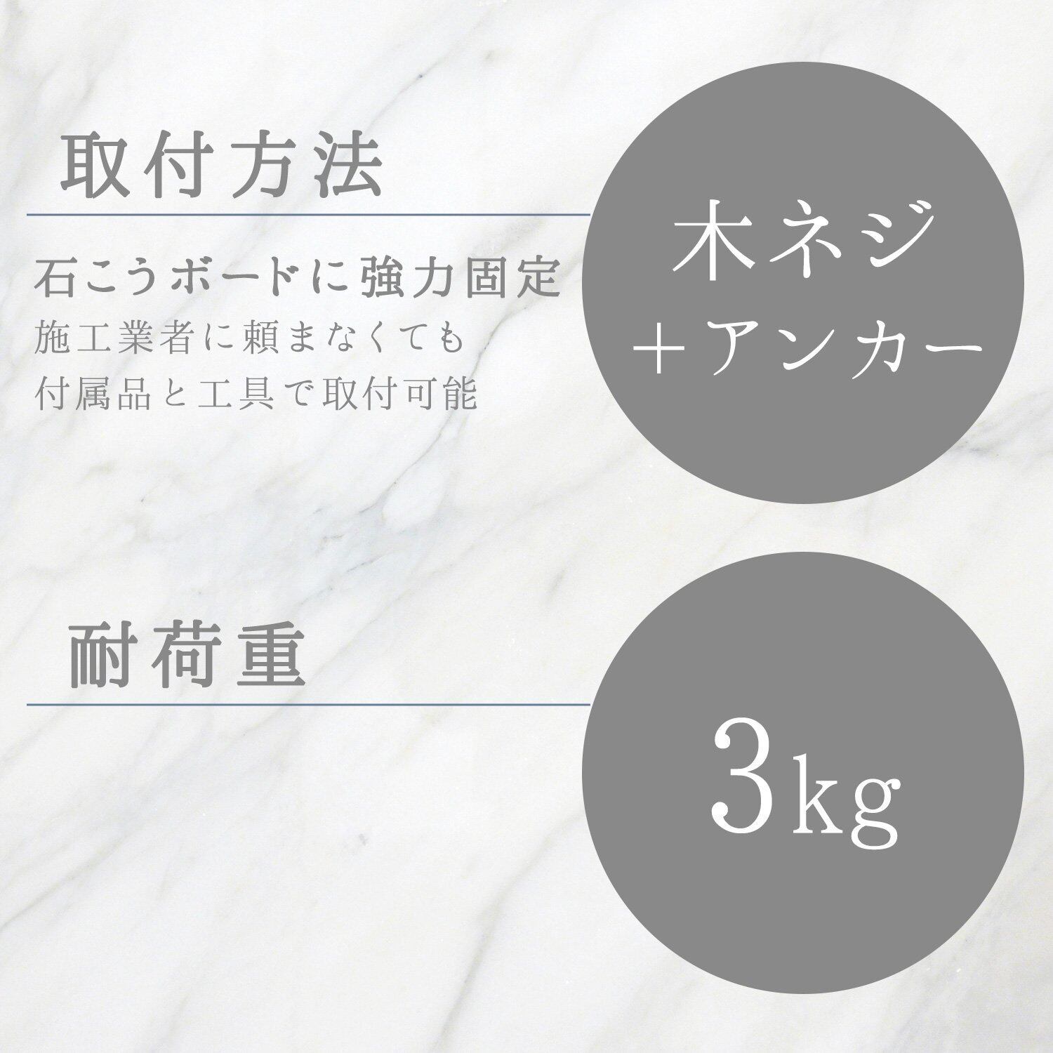 ●取り付けられる場所 : 石膏ボード、板壁、プリント合板